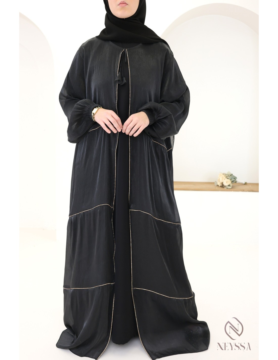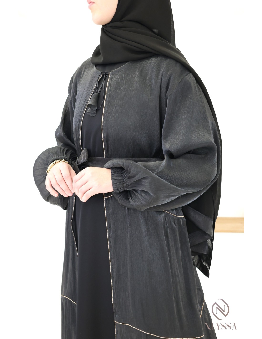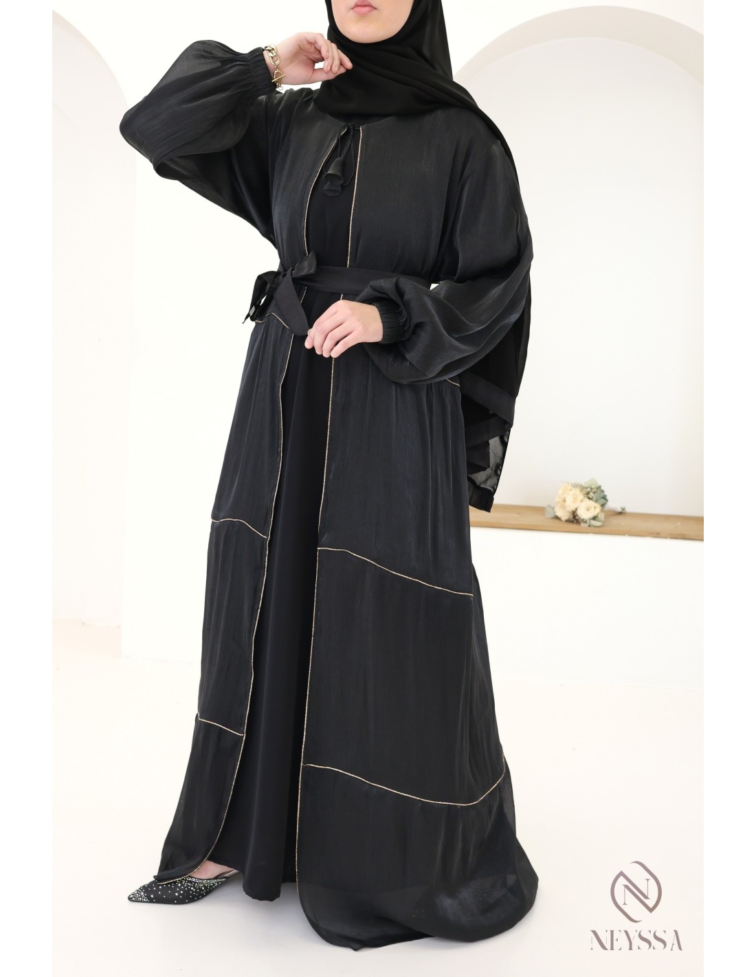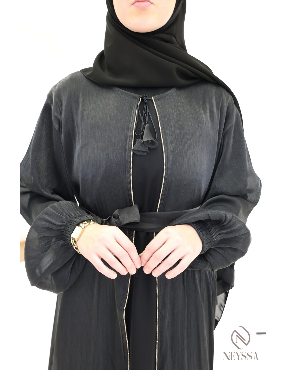 Abaya Kimono Dubaï en organza Noir femme hijabi
