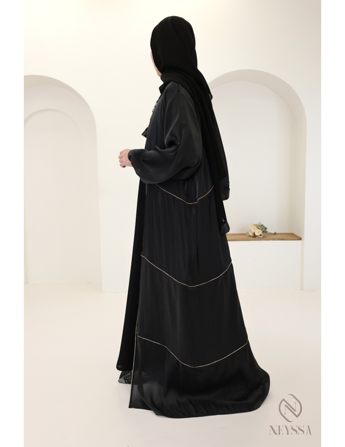 Cette abaya Dubaï en organza de luxe a tout pour vous plaire :