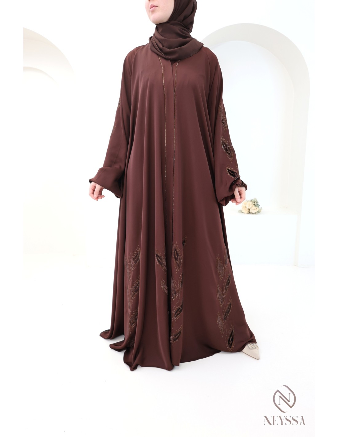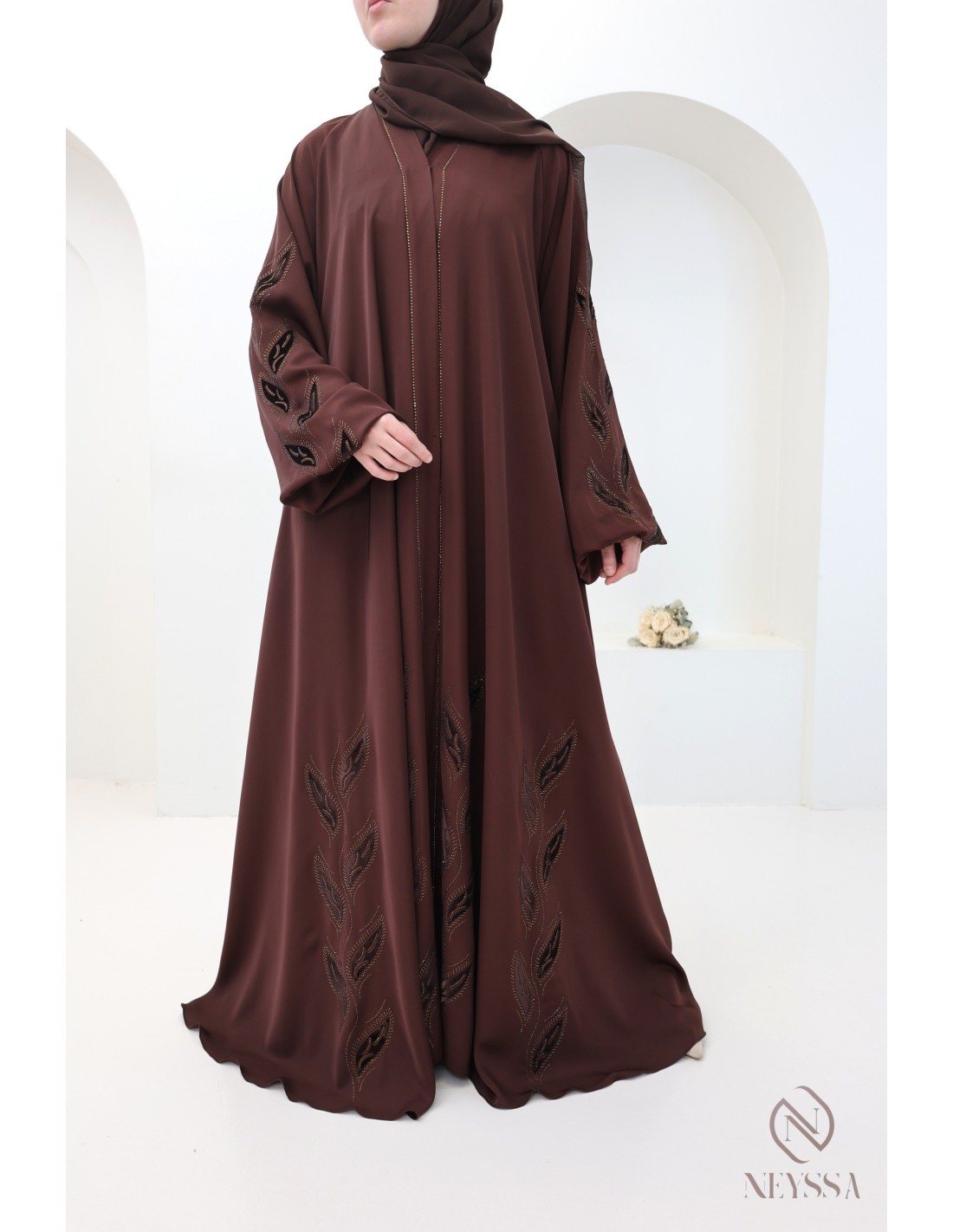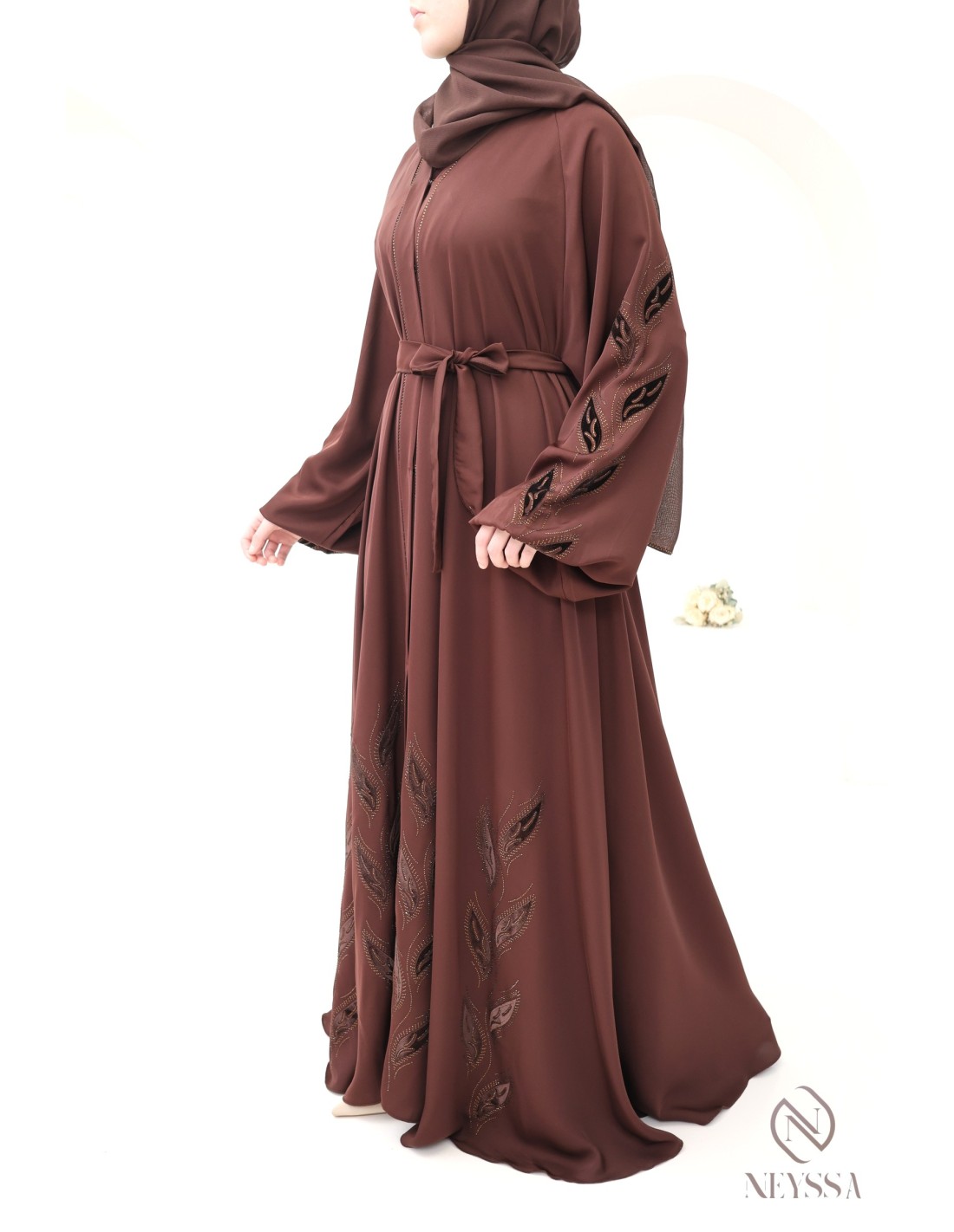 Pourquoi choisir la abaya Dubaï brodée velours et strass marron femme hijabi ?