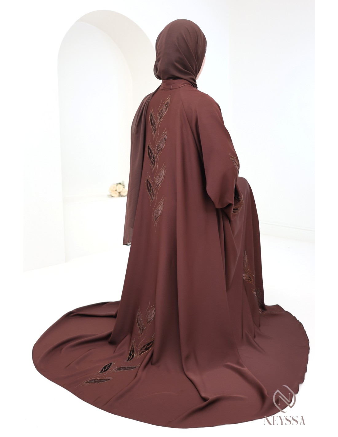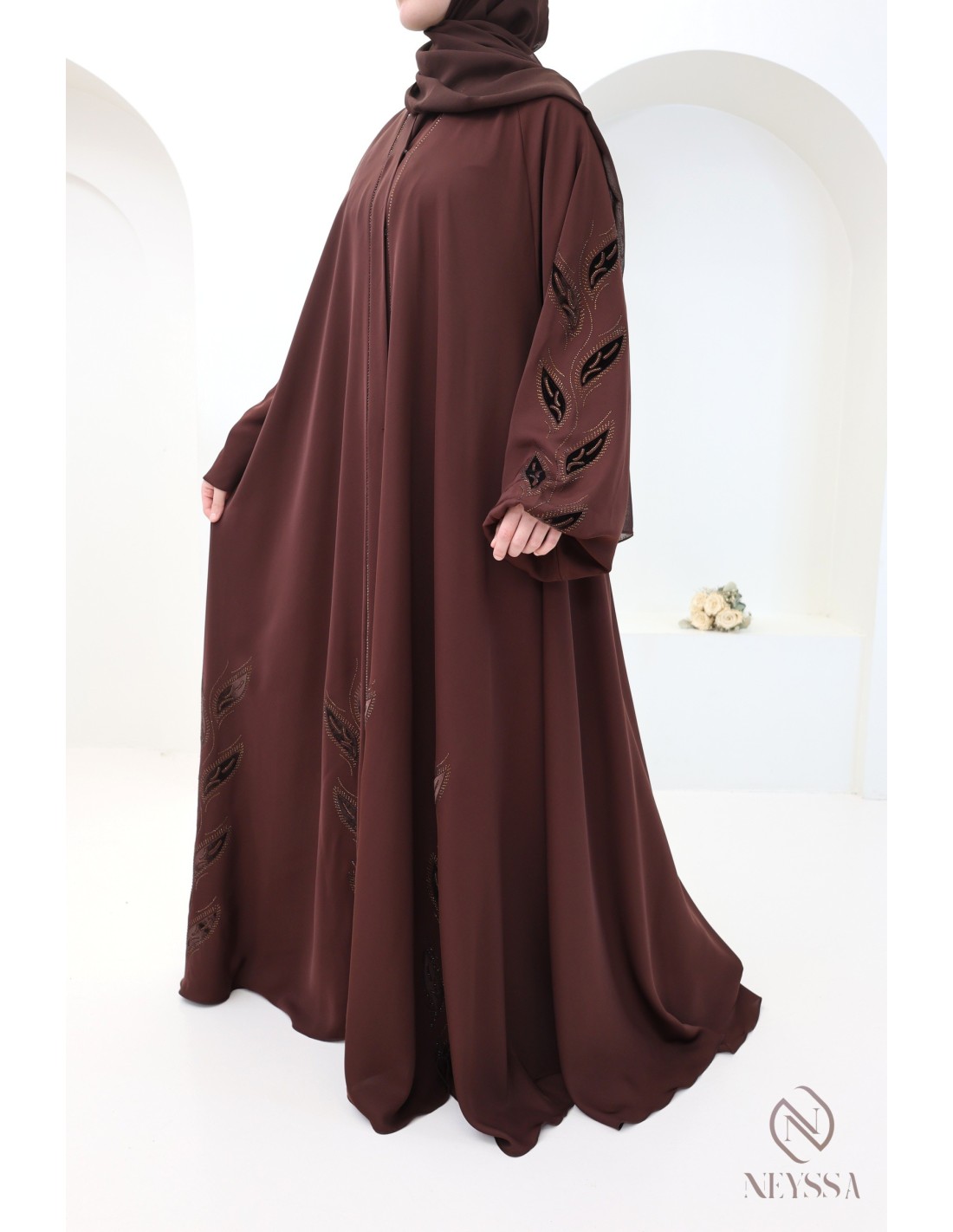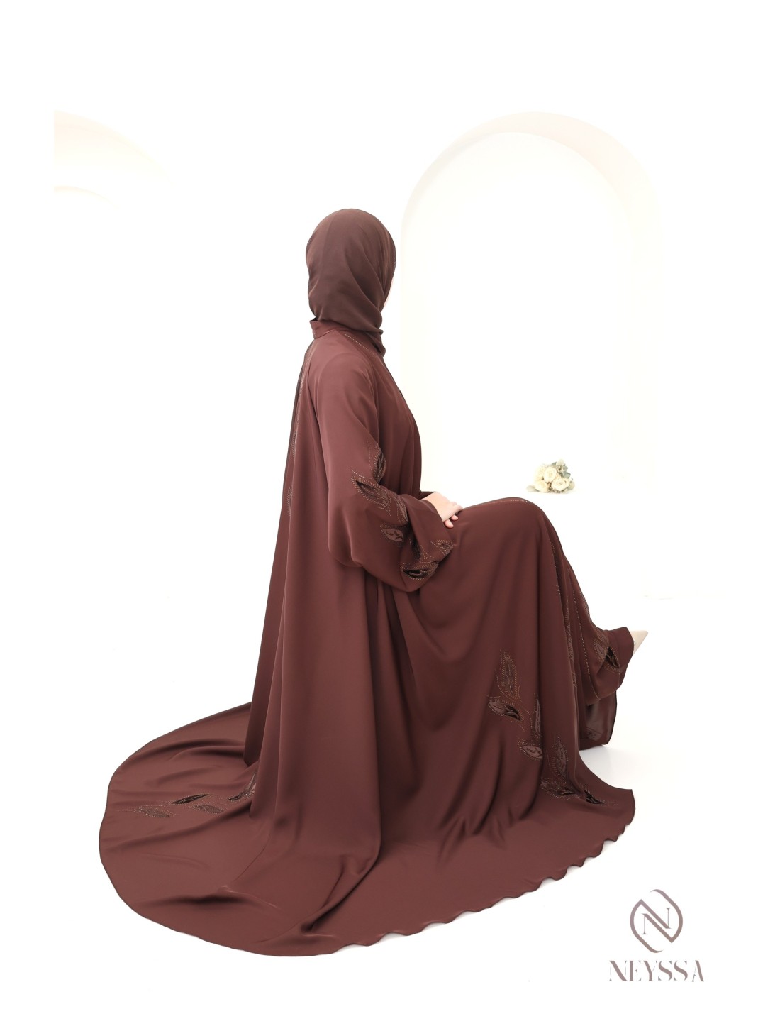 Pourquoi choisir la abaya Dubaï brodée velours et strass marron femme hijabi ?