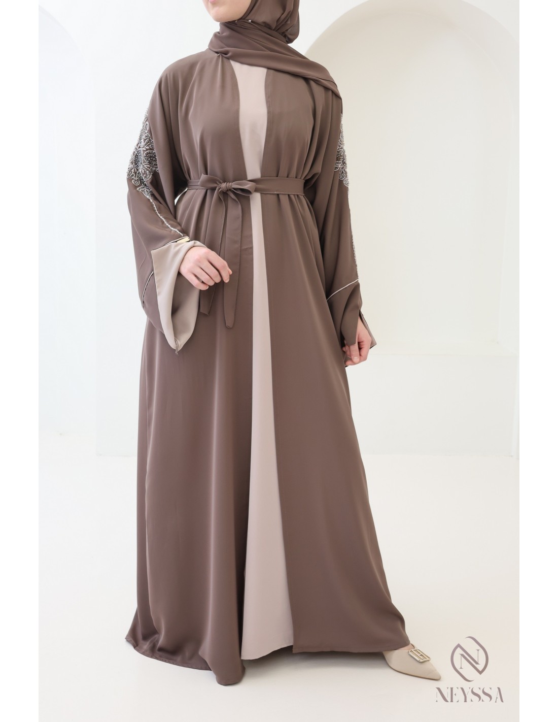 Abaya Dubaï kimono rosy brown soie de Nidah : abaya fêtes religieuses