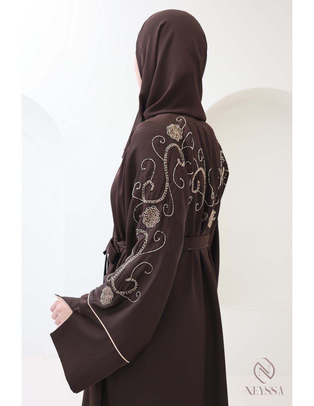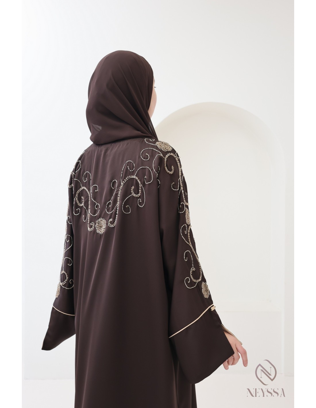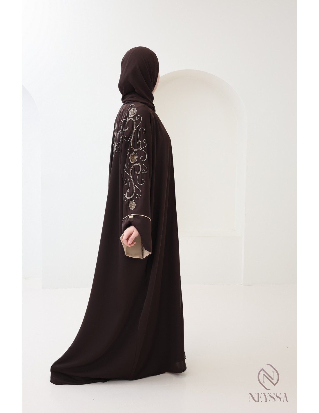 Avec cette magnifique tenue abaya, vous rayonnerez le jour J, c'est certain ! La Confection Neyssa représente un mariage parfait d'élégance et de sophistication. Fabriquée avec soin dans nos ateliers à Dubaï, cette abaya de qualité exceptionnelle dégage un charme incomparable.