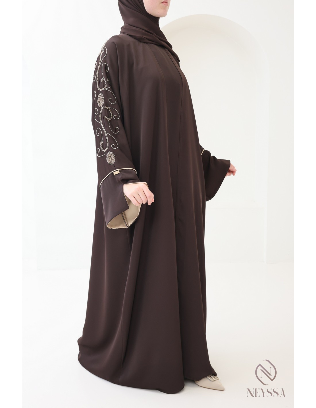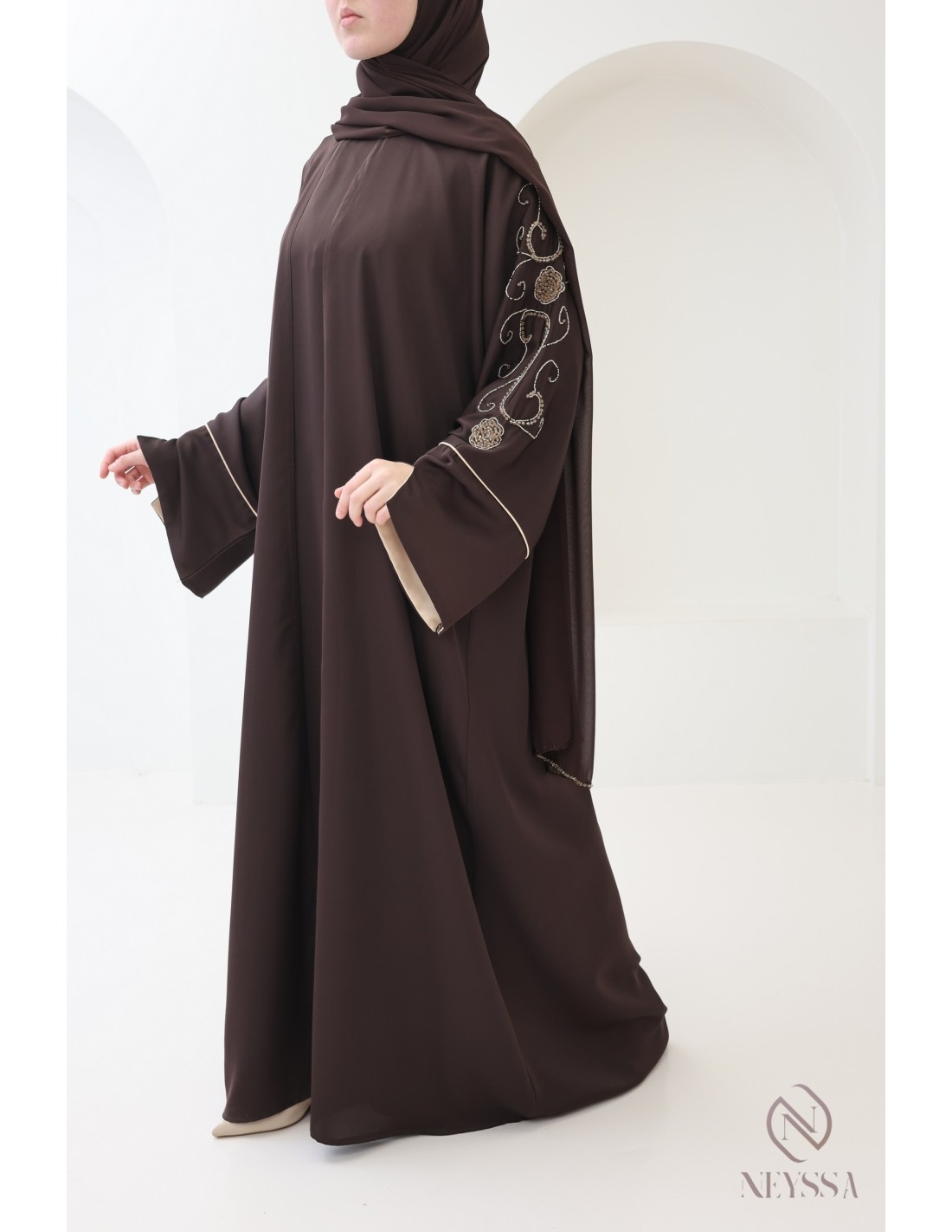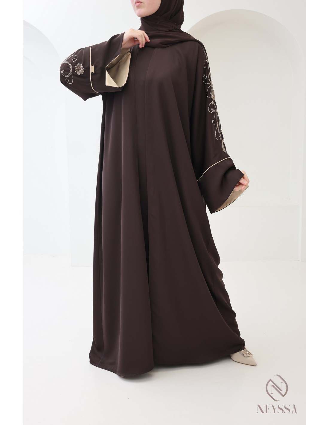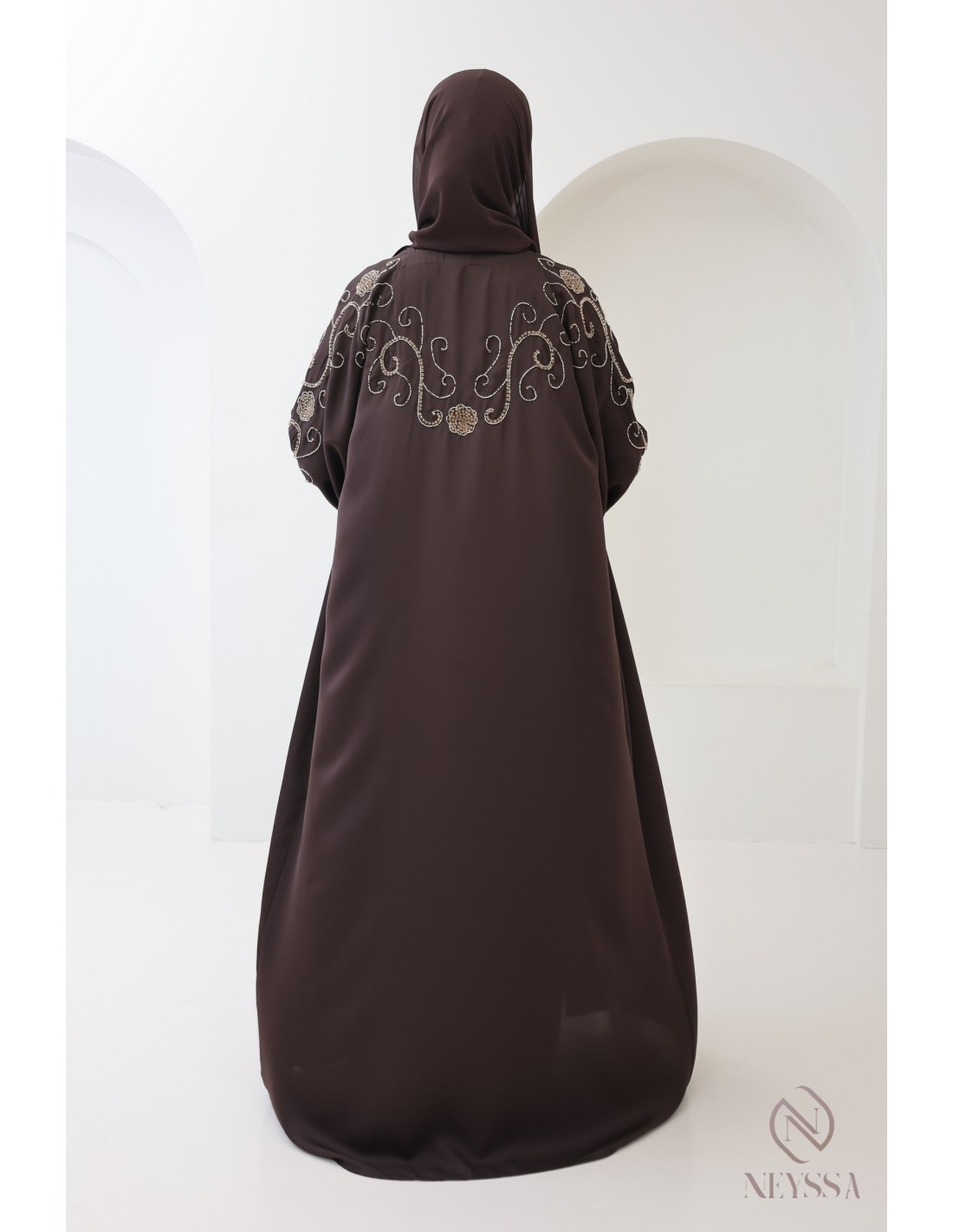 Avec cette magnifique tenue abaya, vous rayonnerez le jour J, c'est certain ! La Confection Neyssa représente un mariage parfait d'élégance et de sophistication. Fabriquée avec soin dans nos ateliers à Dubaï, cette abaya de qualité exceptionnelle dégage un charme incomparable.