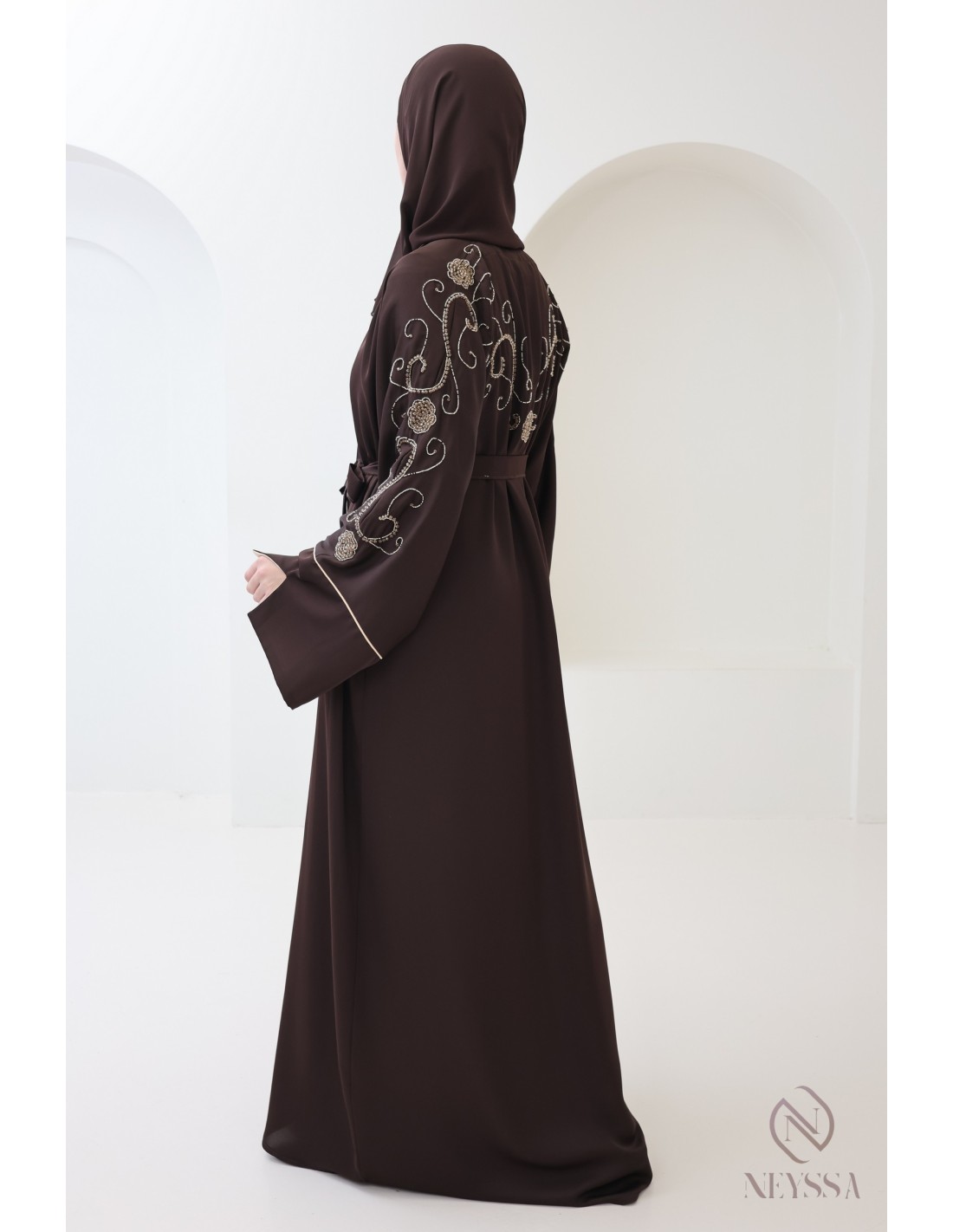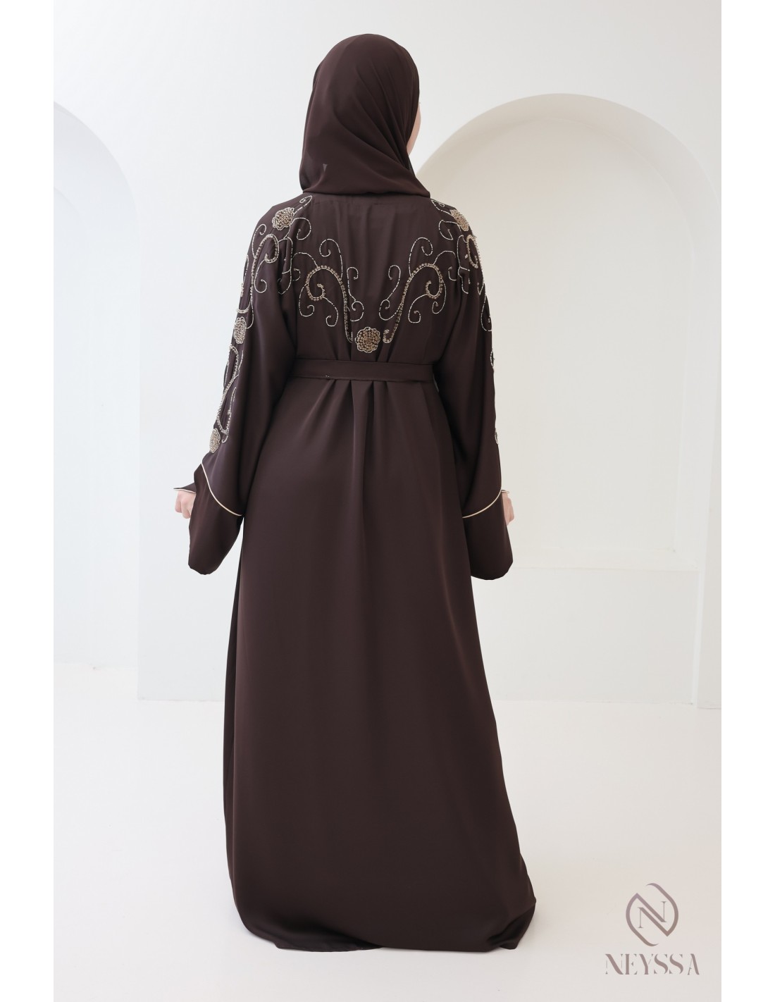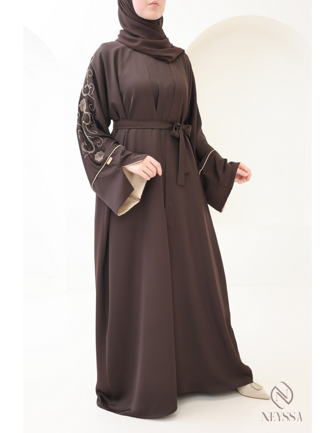 Pourquoi choisir la abaya Dubaï kimono haute qualité femme Chocolat ?
