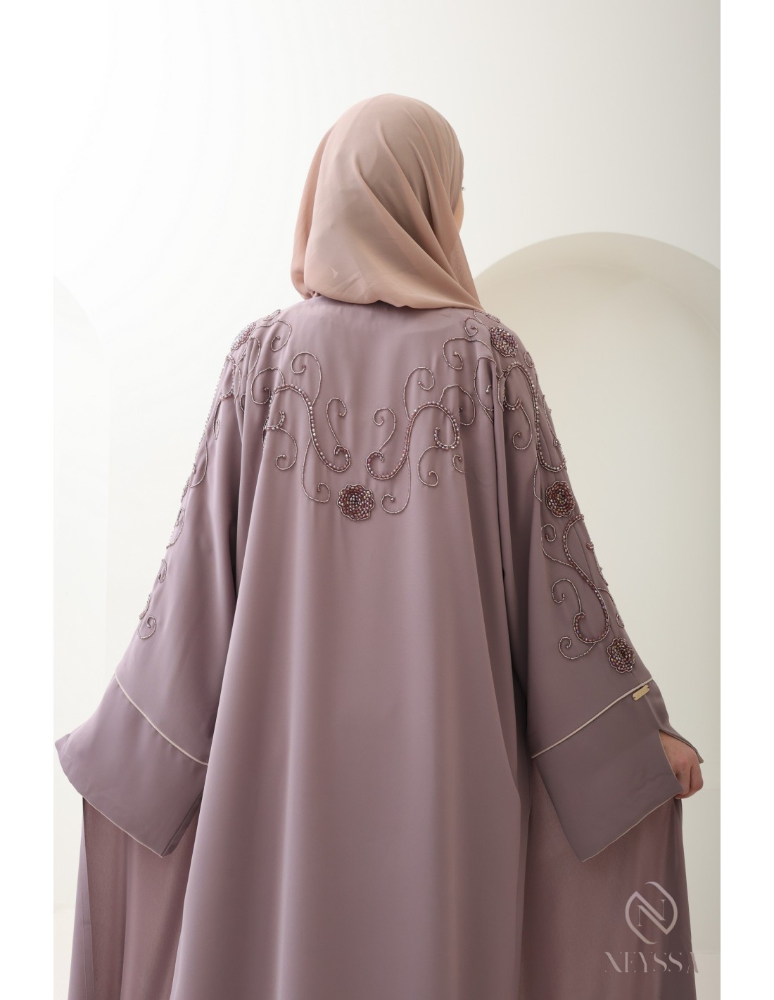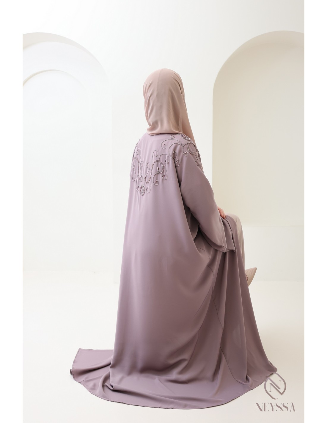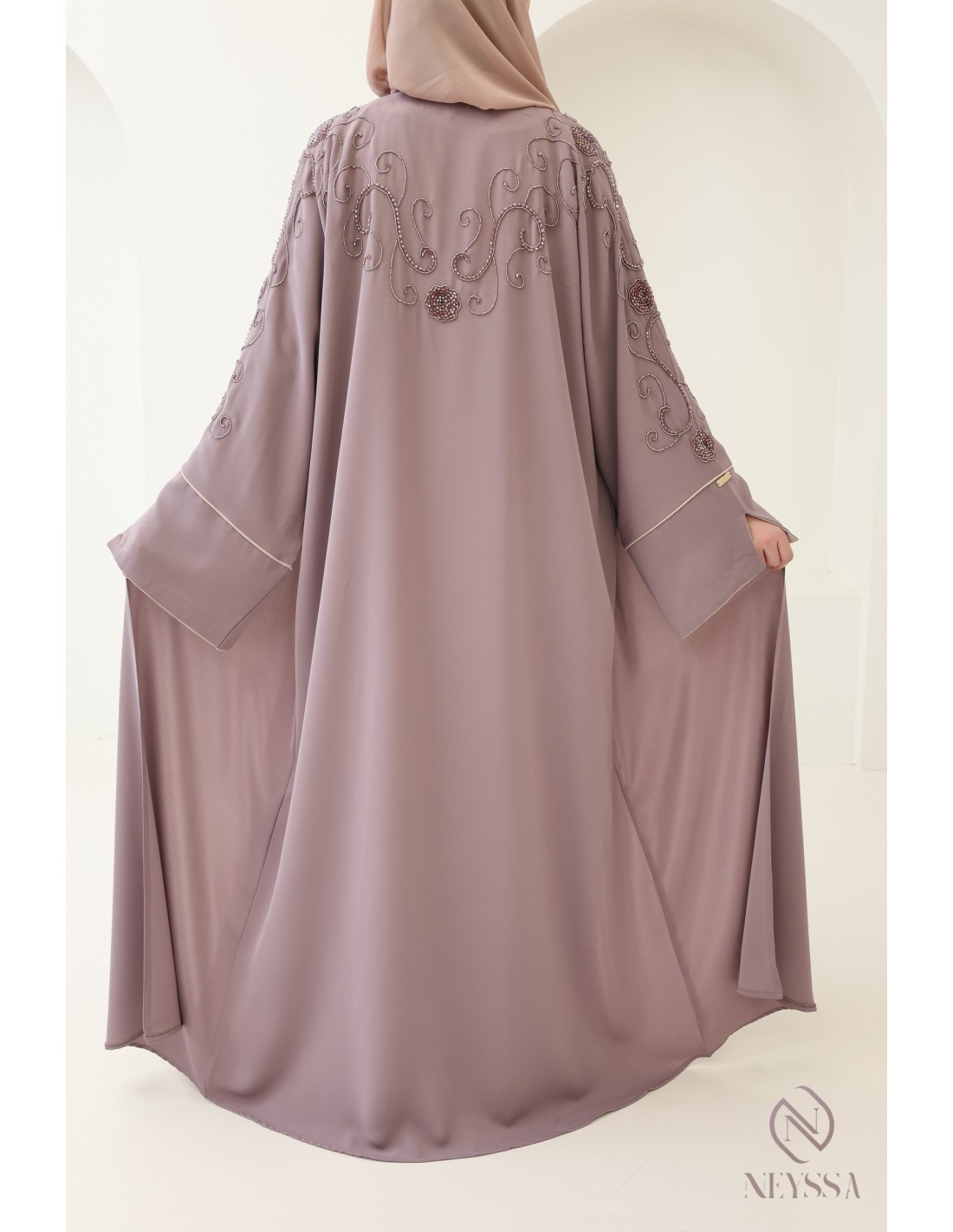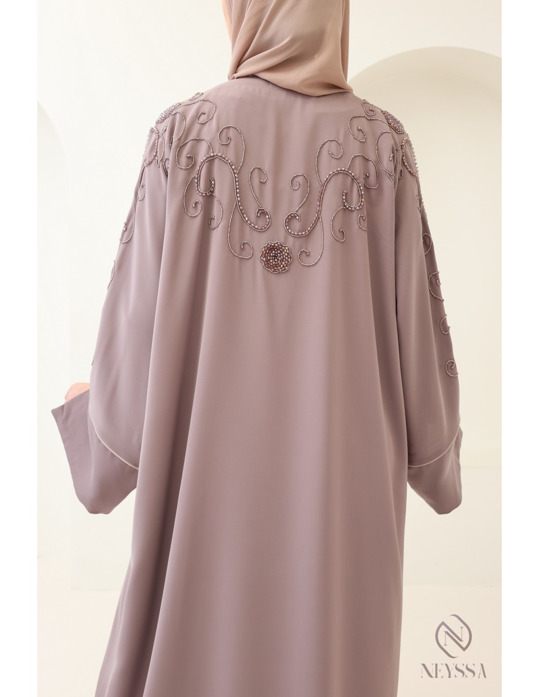 Avec cette magnifique tenue abaya, vous rayonnerez le jour J, c'est certain ! La Confection Neyssa représente un mariage parfait d'élégance et de sophistication. Fabriquée avec soin dans nos ateliers à Dubaï, cette abaya de qualité exceptionnelle dégage un charme incomparable.