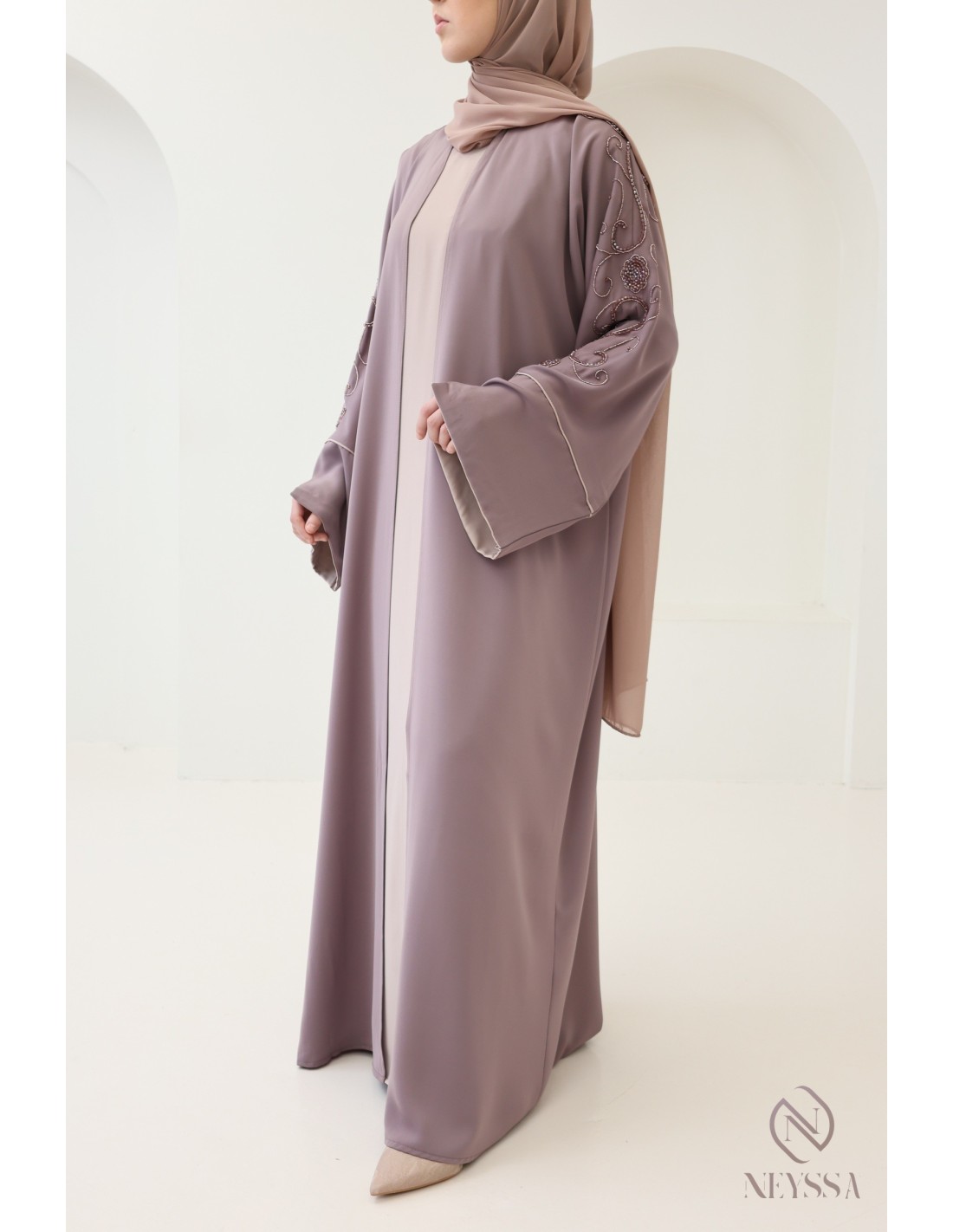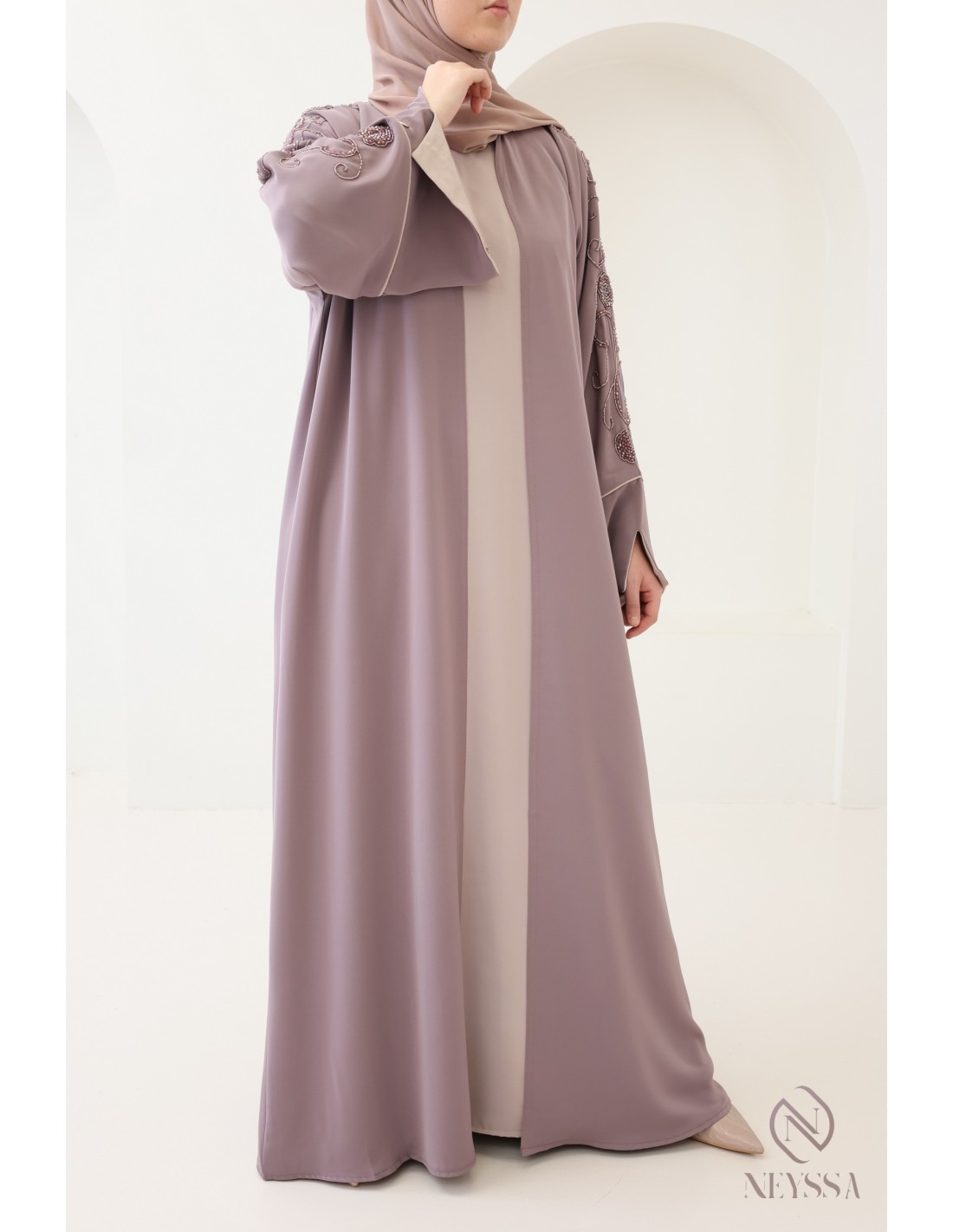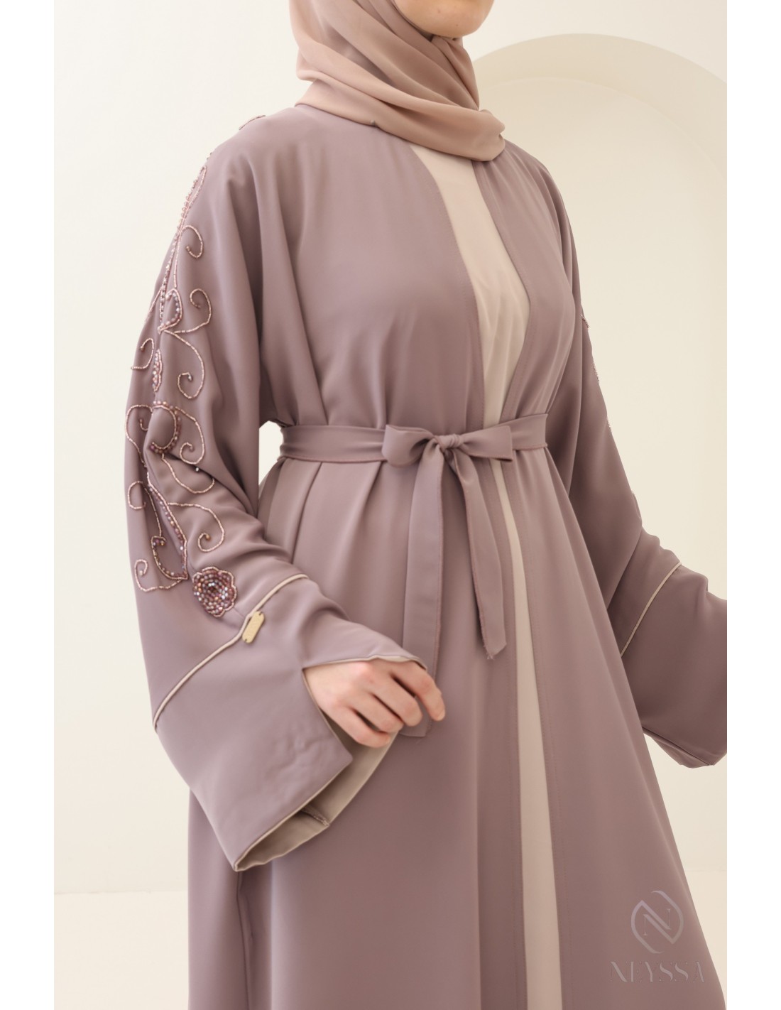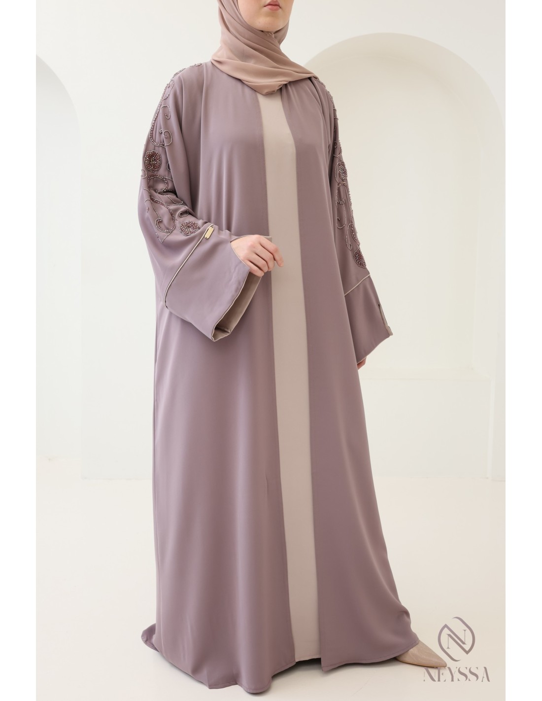 Avec cette magnifique tenue abaya, vous rayonnerez le jour J, c'est certain ! La Confection Neyssa représente un mariage parfait d'élégance et de sophistication. Fabriquée avec soin dans nos ateliers à Dubaï, cette abaya de qualité exceptionnelle dégage un charme incomparable.