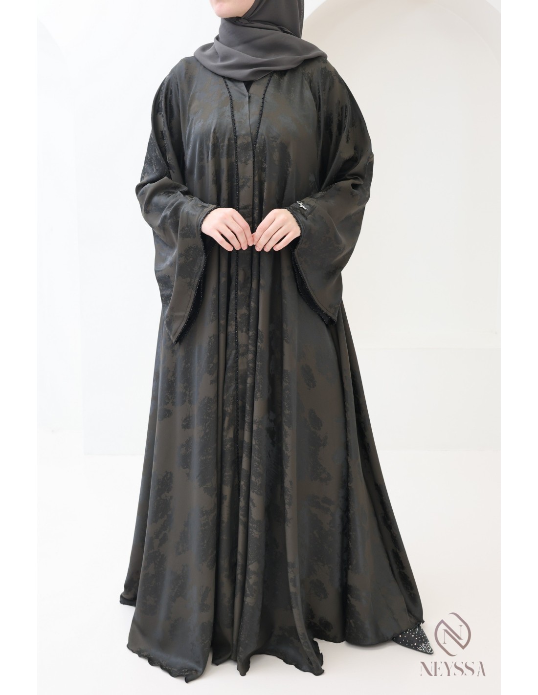 Vous allez craquer pour la abaya Dubaï boisée gris foncé soie de nidah femme :