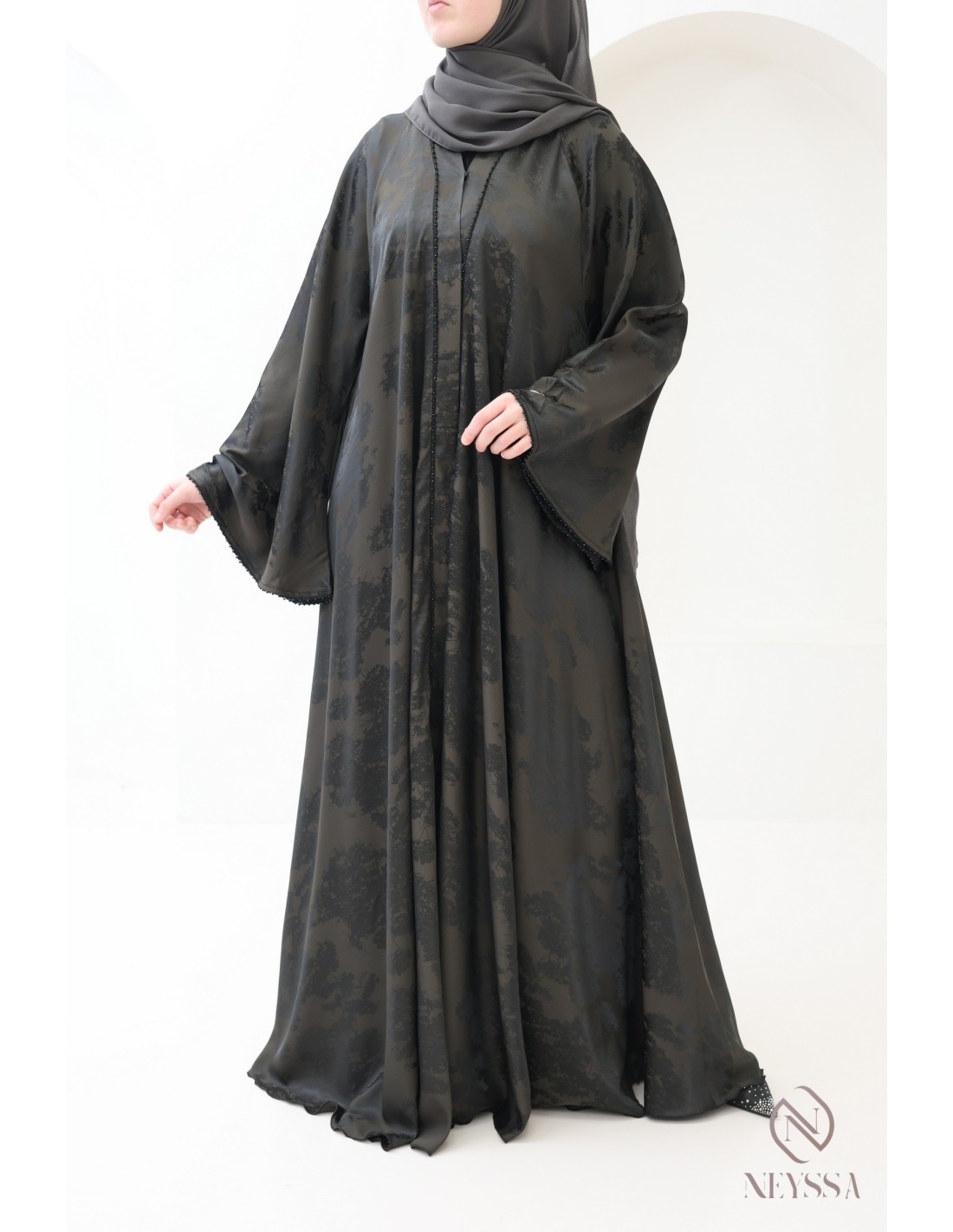 - Tissu en soie de Nidah : Fabriqué à partir de tissu de qualité supérieure, cette abaya garantit une texture douce, légère et durable.