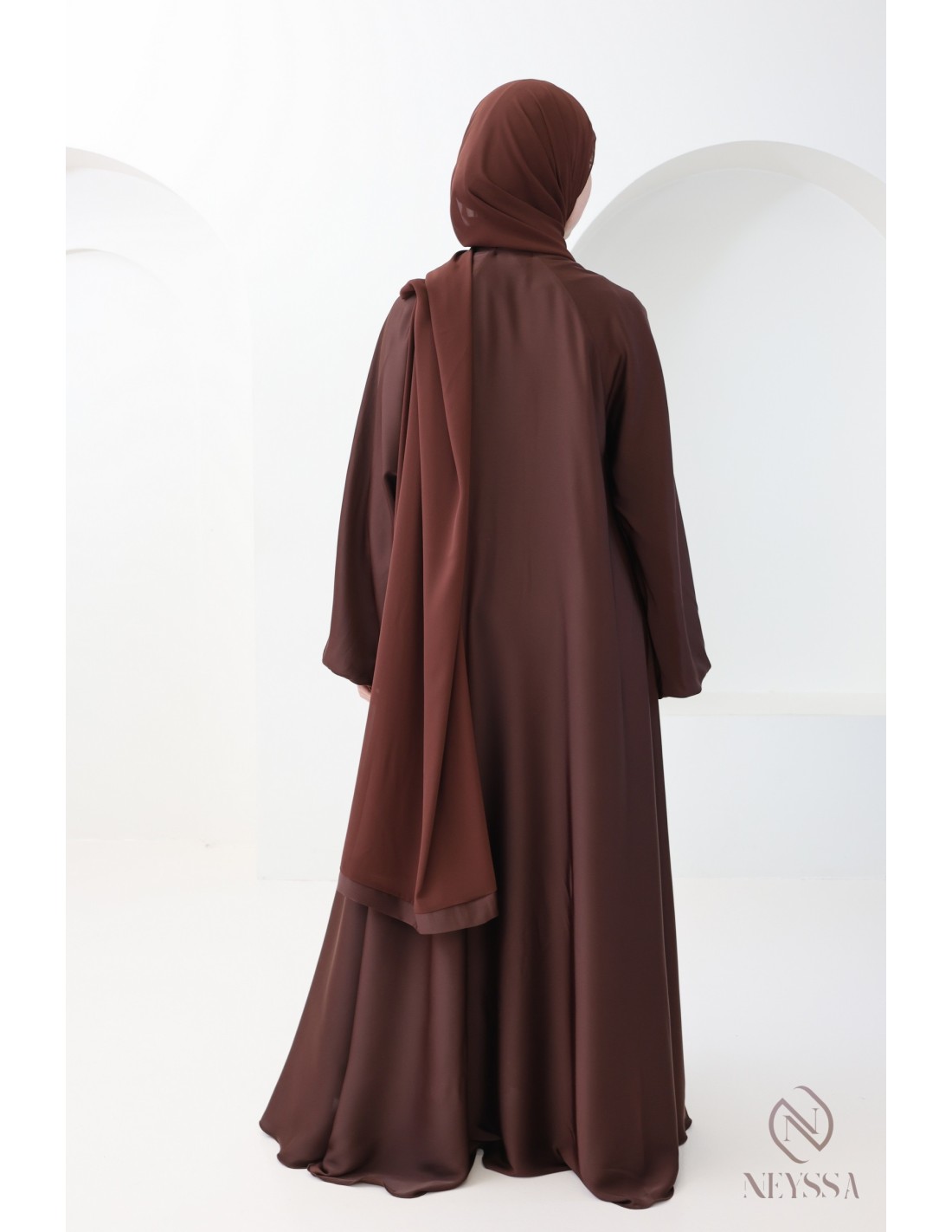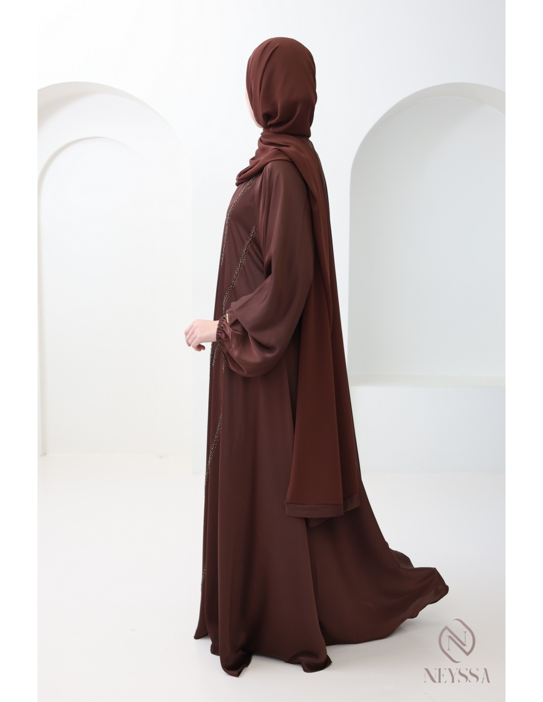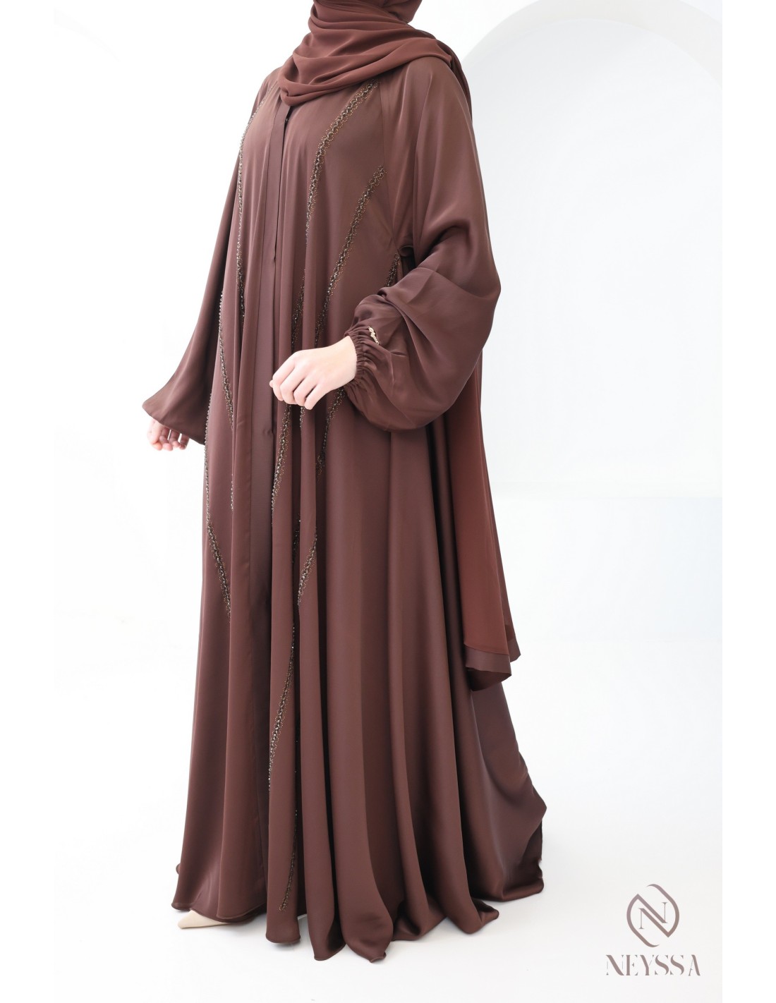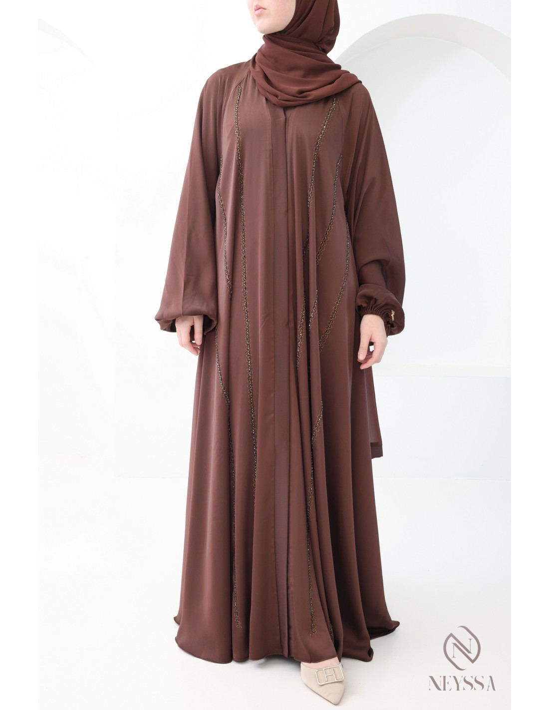 Abaya Dubaï luxe évasée Arabian Veil Marron