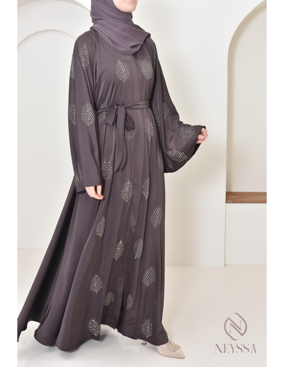 Abaya Dubaï longue coupe umbrella à strass : Neyssa Confection