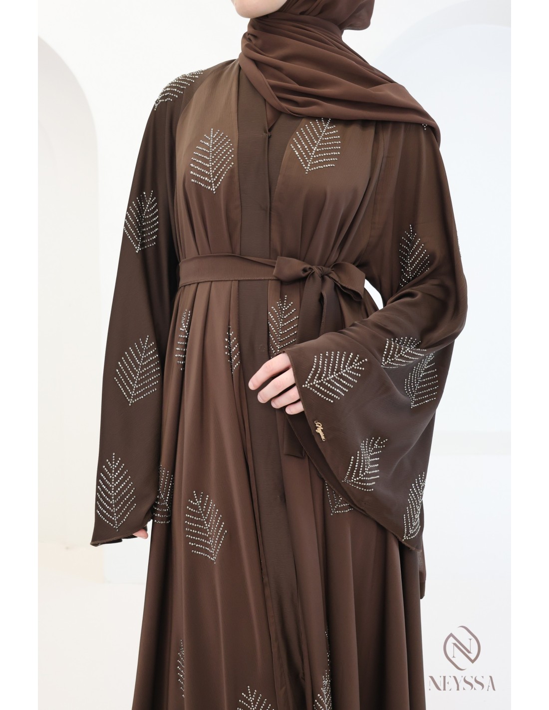 Abaya Dubaï Neyssa 3 pièces, motifs strass