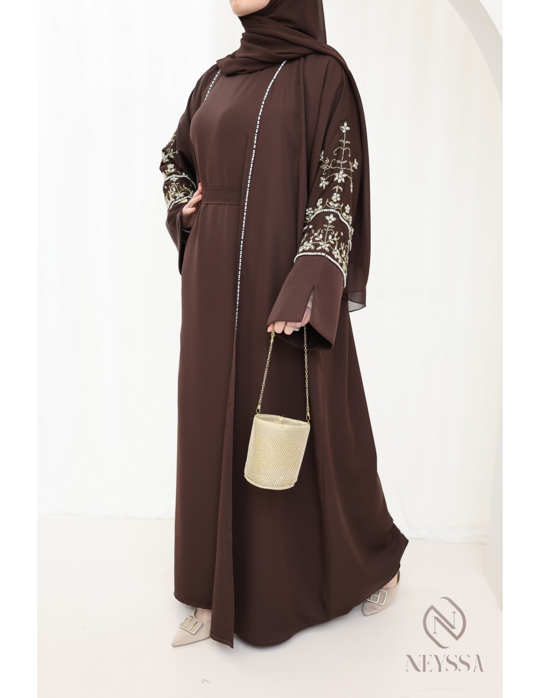 Avec cette magnifique tenue abaya, vous rayonnerez le jour J, c'est certain ! La Confection Neyssa représente un mariage parfait d'élégance et de sophistication. Fabriquée avec soin dans nos ateliers à Dubaï, cette abaya de qualité exceptionnelle dégage un charme incomparable.
