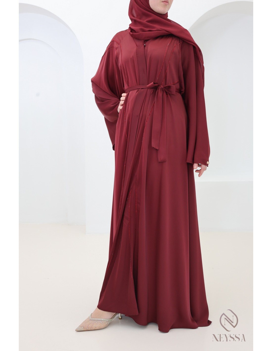 Abaya Dubaï luxe Bordeaux pour l'Aïd
