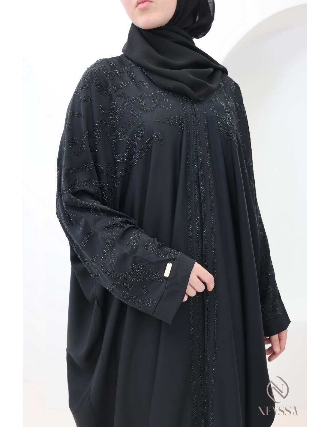Abaya Dubaï kimono coupe papillon avec strass arabesques femme
