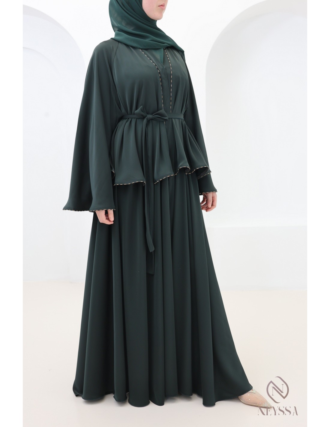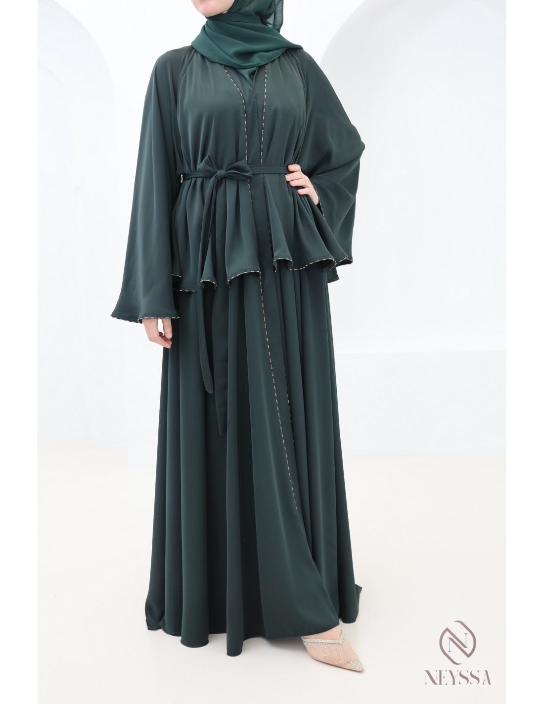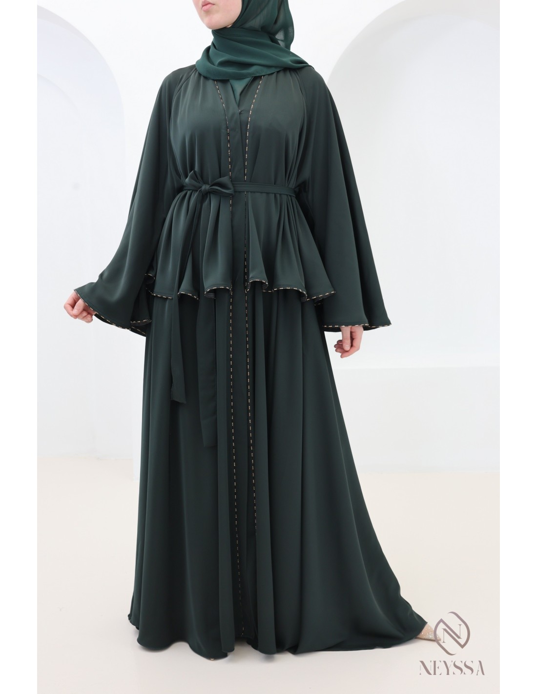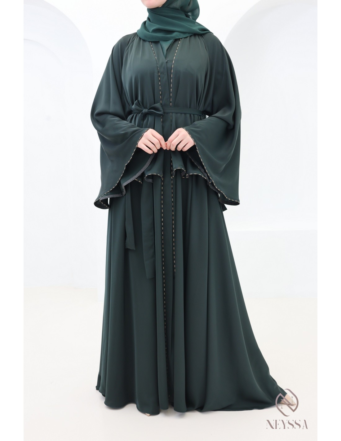 Abaya Dubaï kimono luxe évasée Azmira Vert