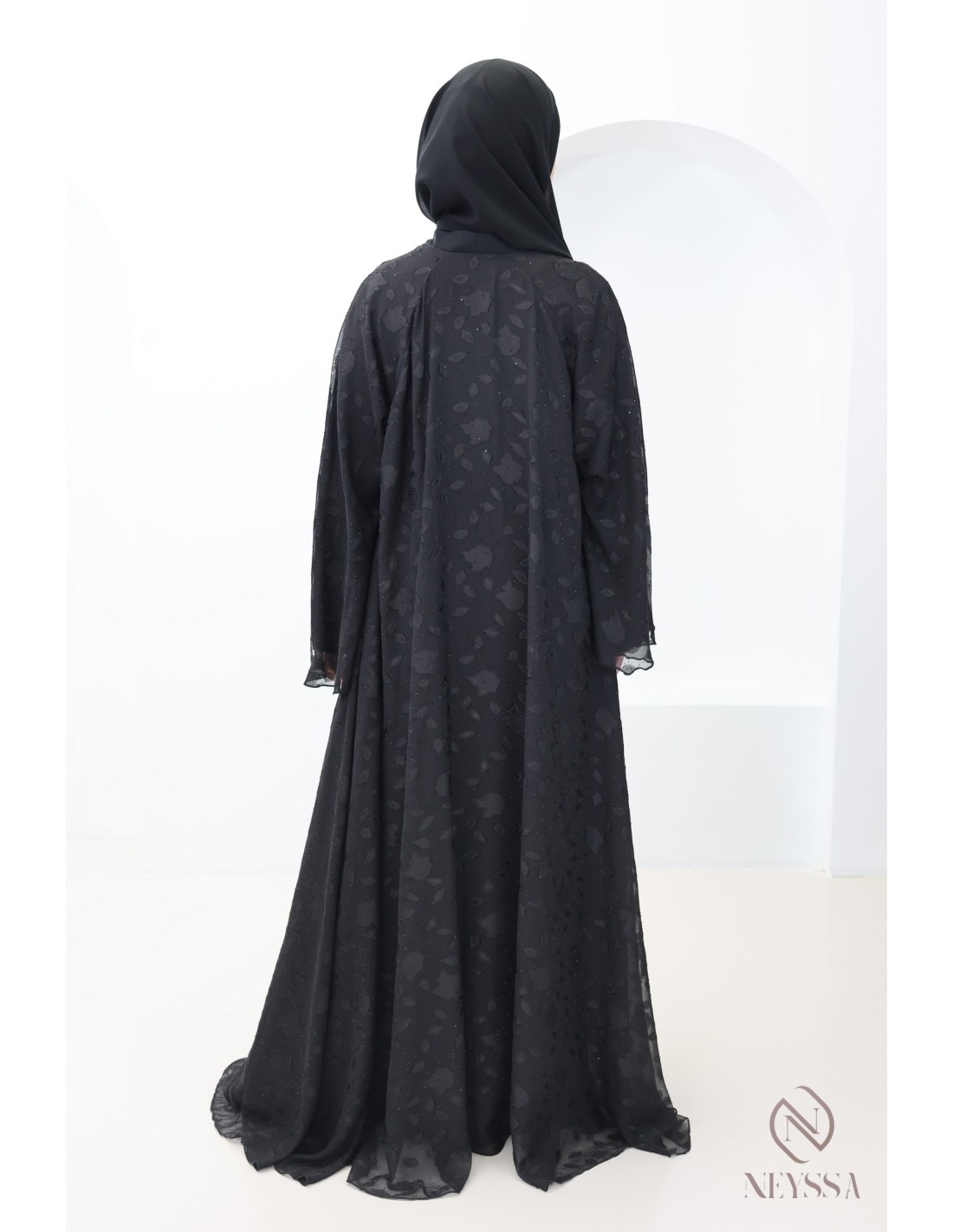 Avec cette magnifique tenue abaya, vous rayonnerez le jour J, c'est certain ! La Confection Neyssa représente un mariage parfait d'élégance et de sophistication. Fabriquée avec soin dans nos ateliers à Dubaï, cette abaya de qualité exceptionnelle dégage un charme incomparable.