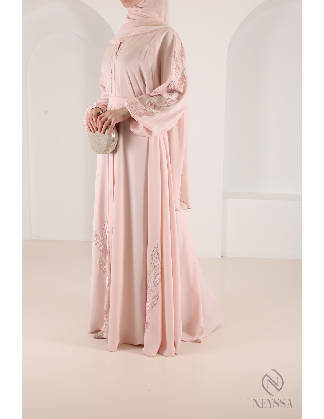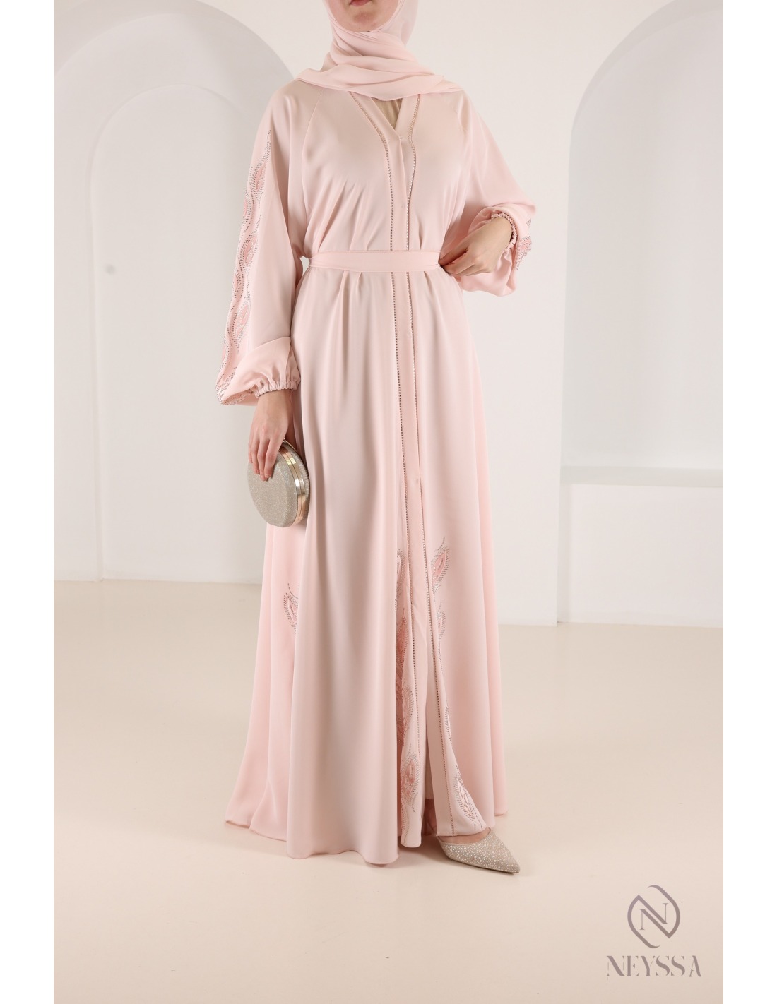 Abaya Dubaï strass Oasis Couture Rose poudré