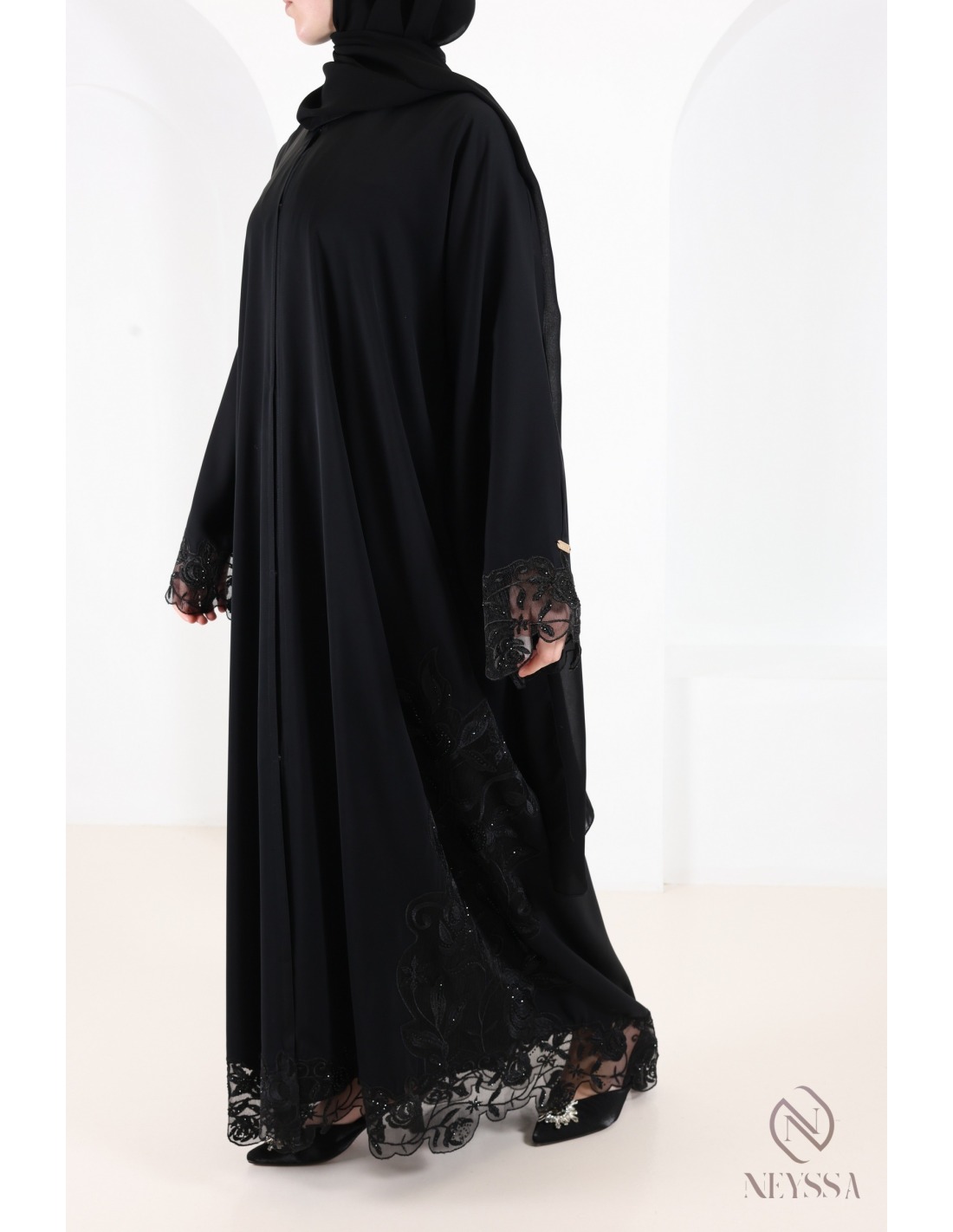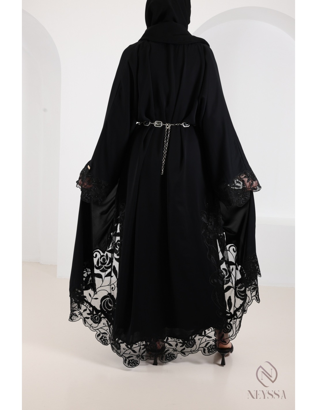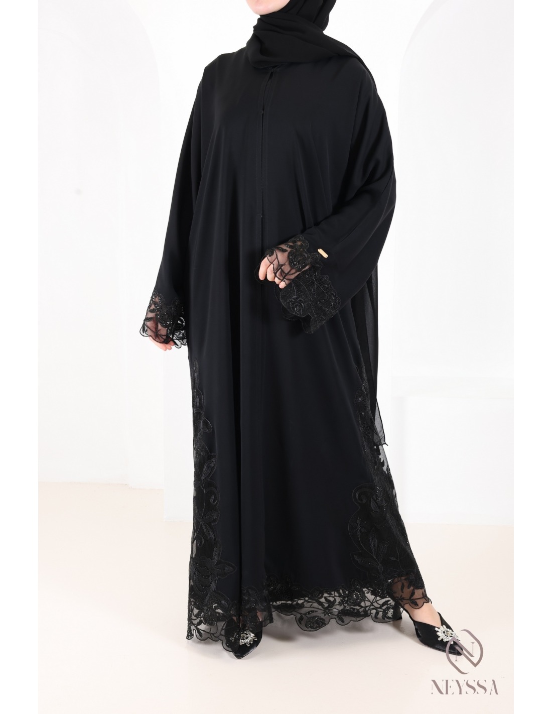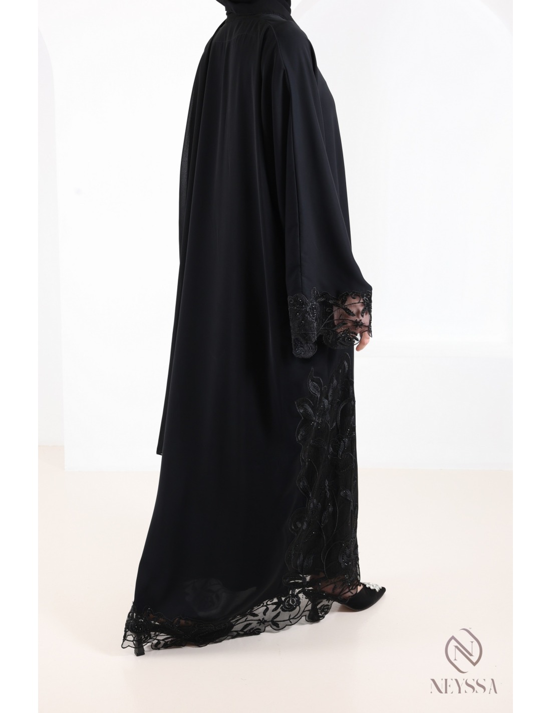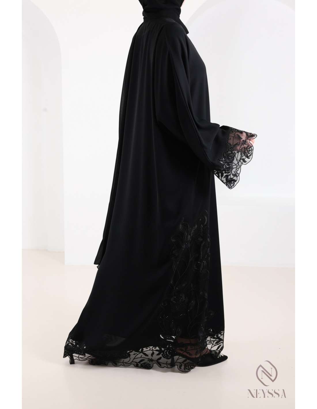 • Finitions parfaites personnalisées : Une plaque dorée Neyssa est cousue à la main sur la manche de la abaya.