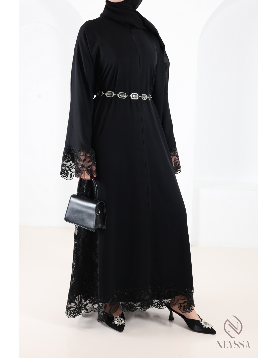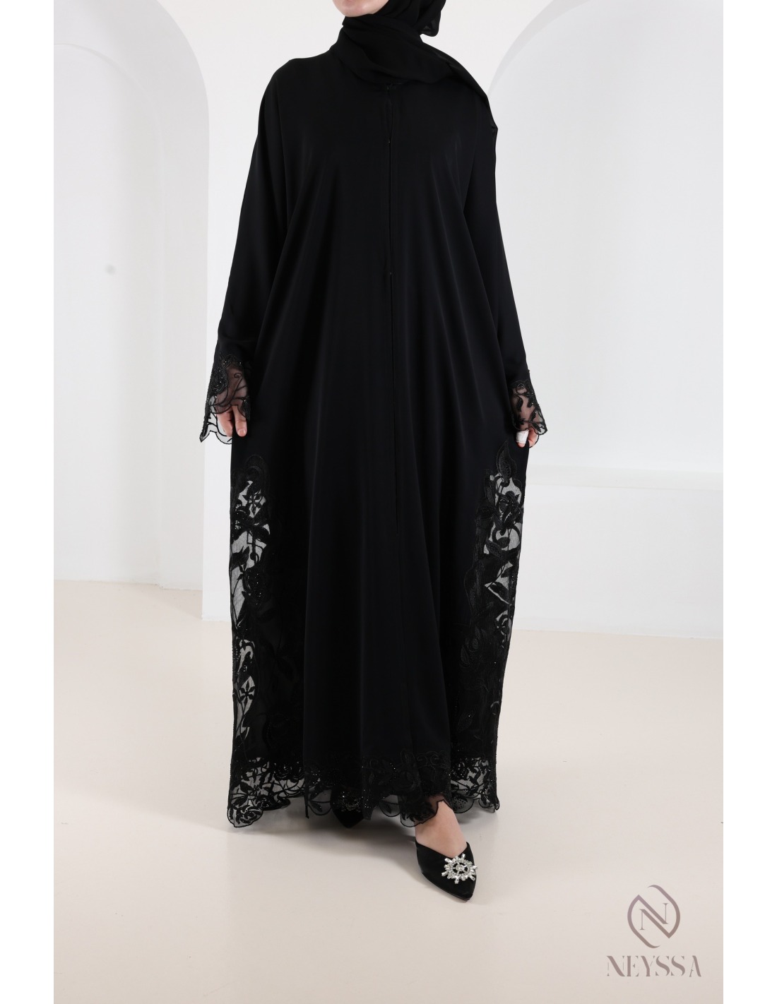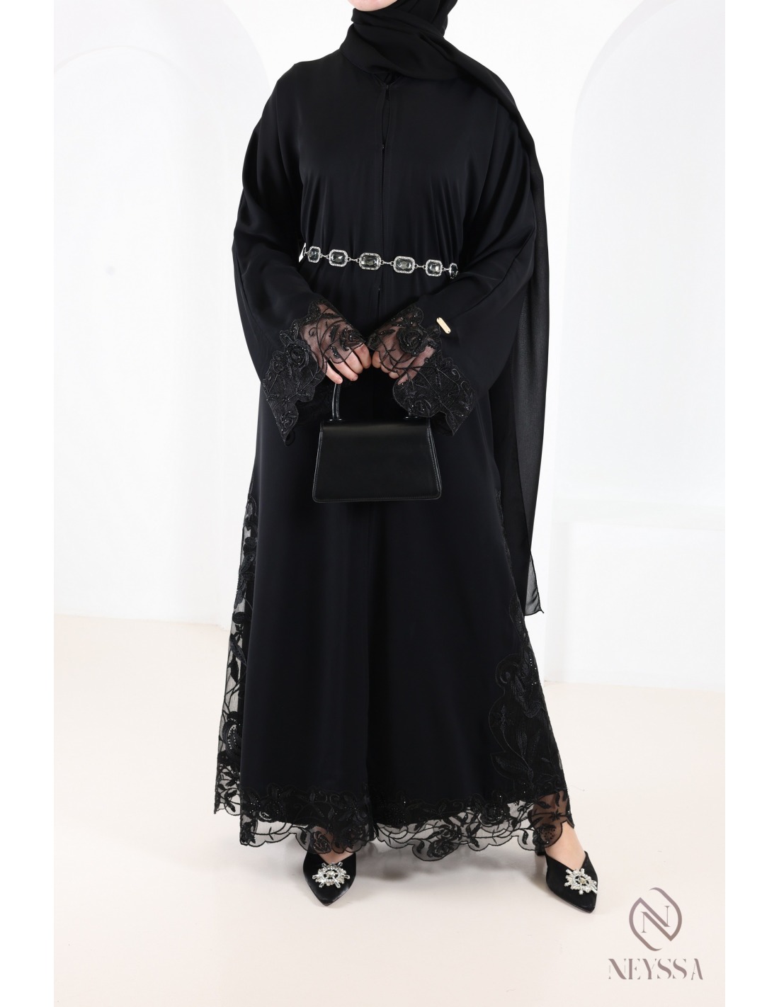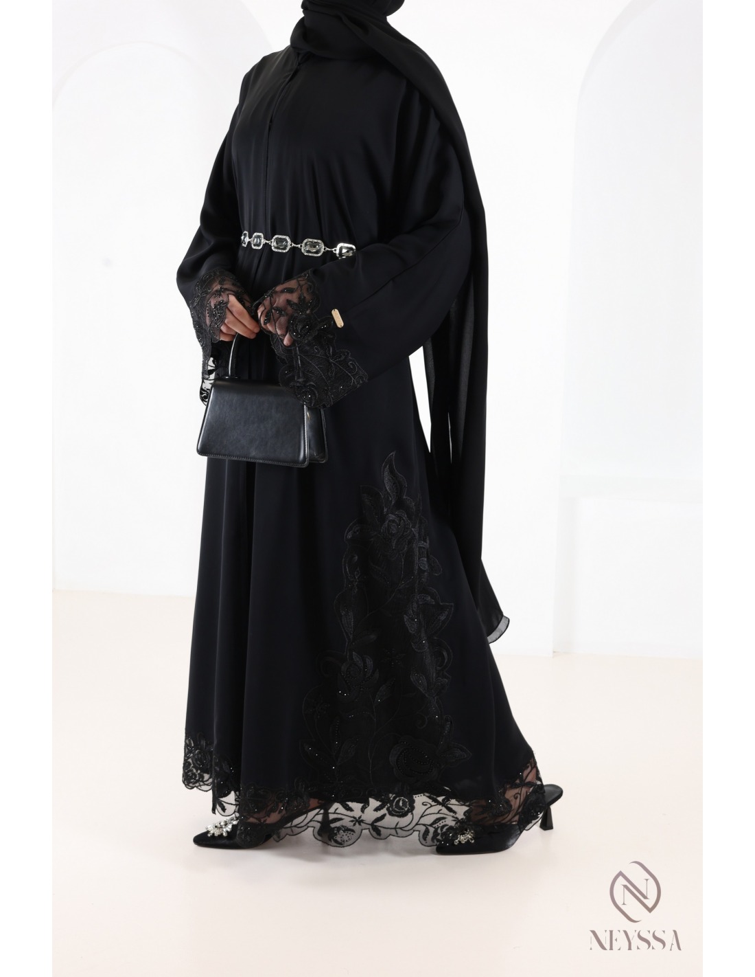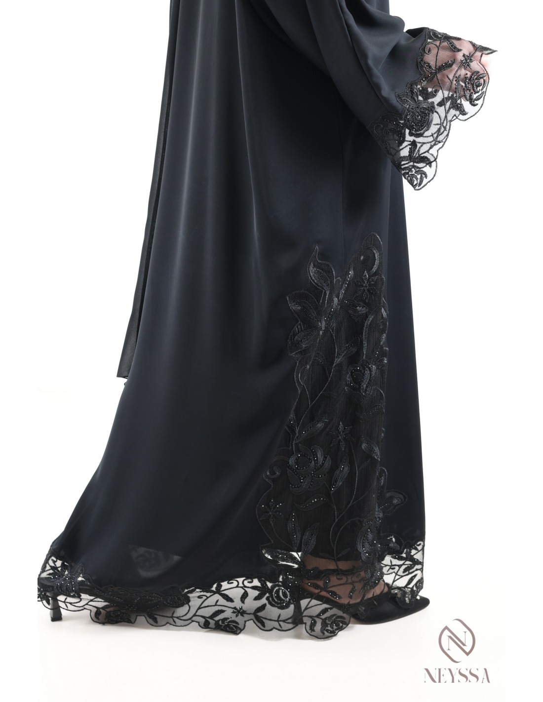 • Finitions parfaites personnalisées : Une plaque dorée Neyssa est cousue à la main sur la manche de la abaya.