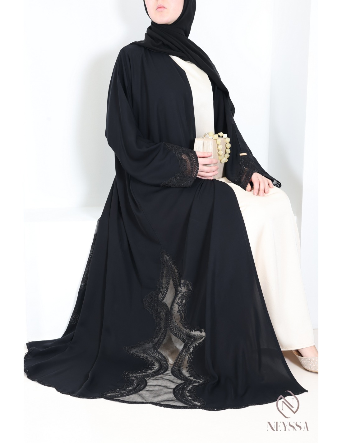• Abaya ouverte : abaya hyper classe  ( la sous abaya est vendue séparément )