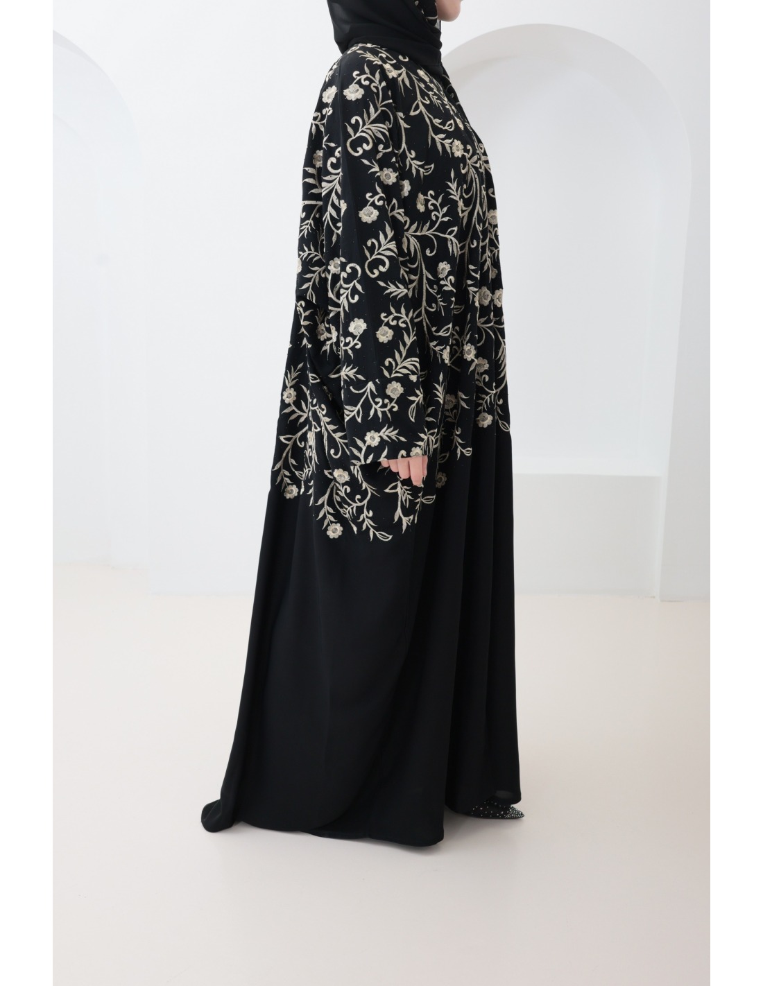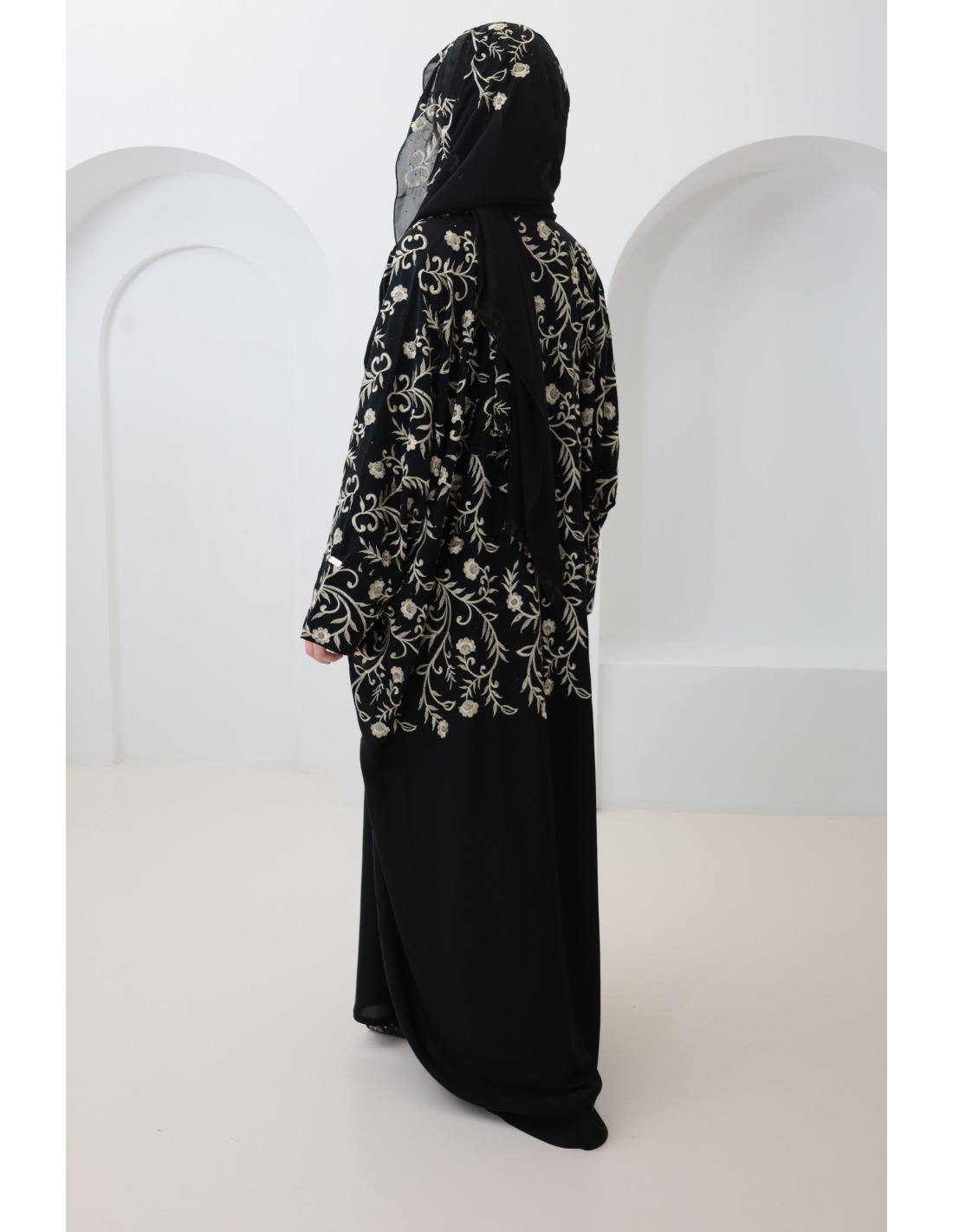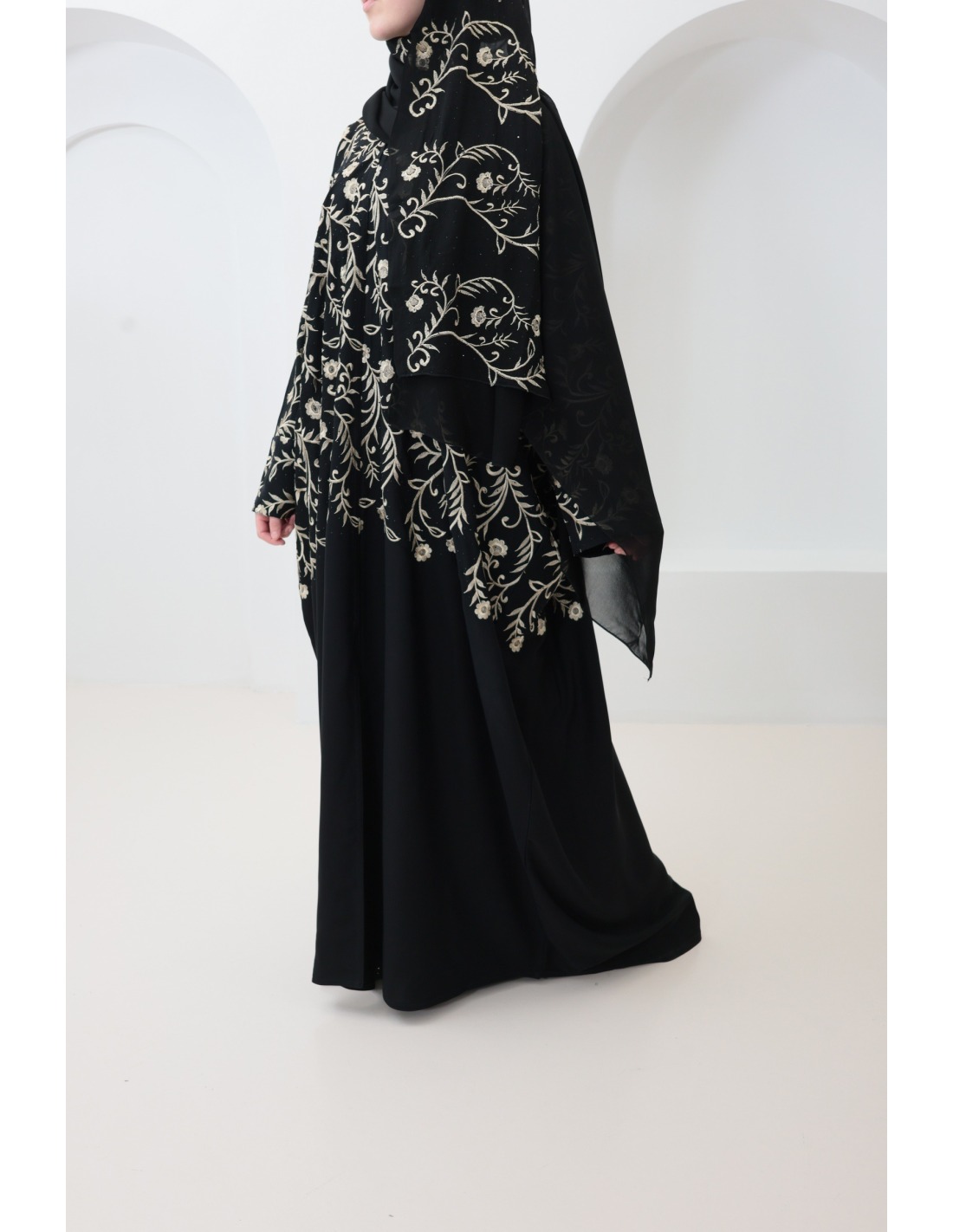 • Hijab fourni : Complétez votre look avec le hijab sur lequel il y a des détails de broderie, offert avec cette abaya, pour une coordination parfaite (peut varier en fonction des arrivages)