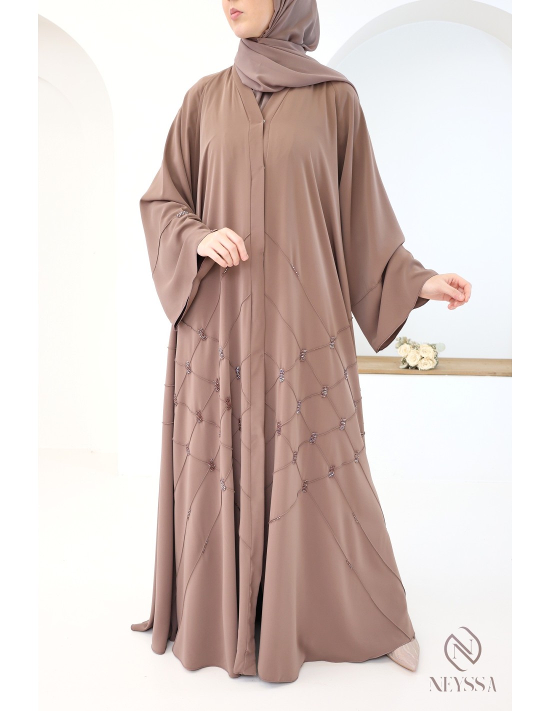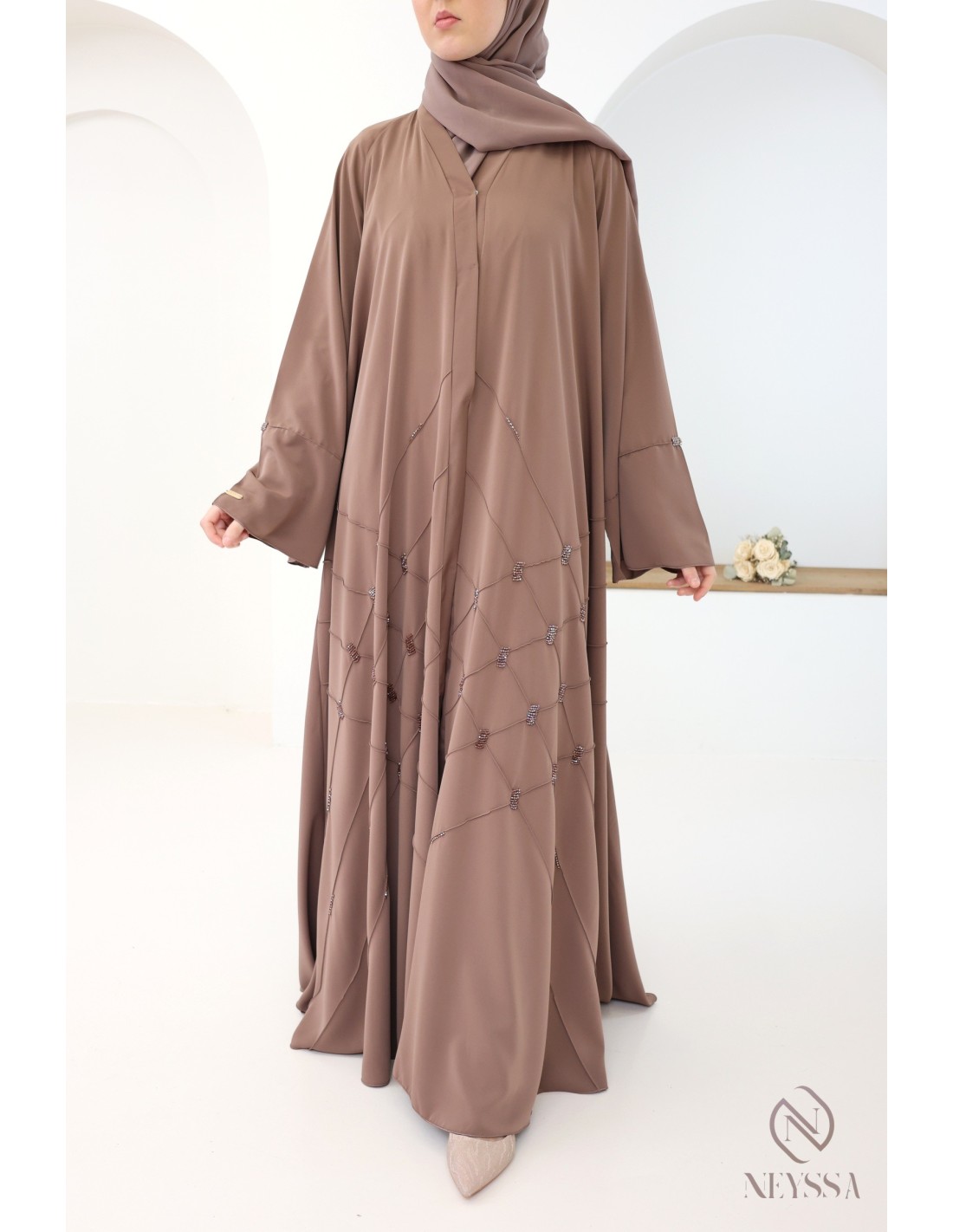 Abaya Dubaï luxe évasée SANELA Capuccino