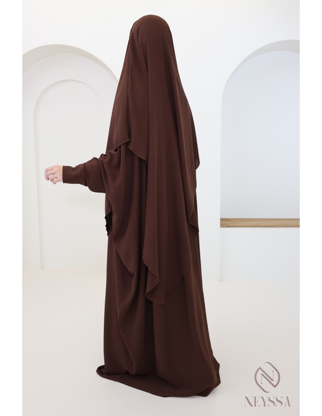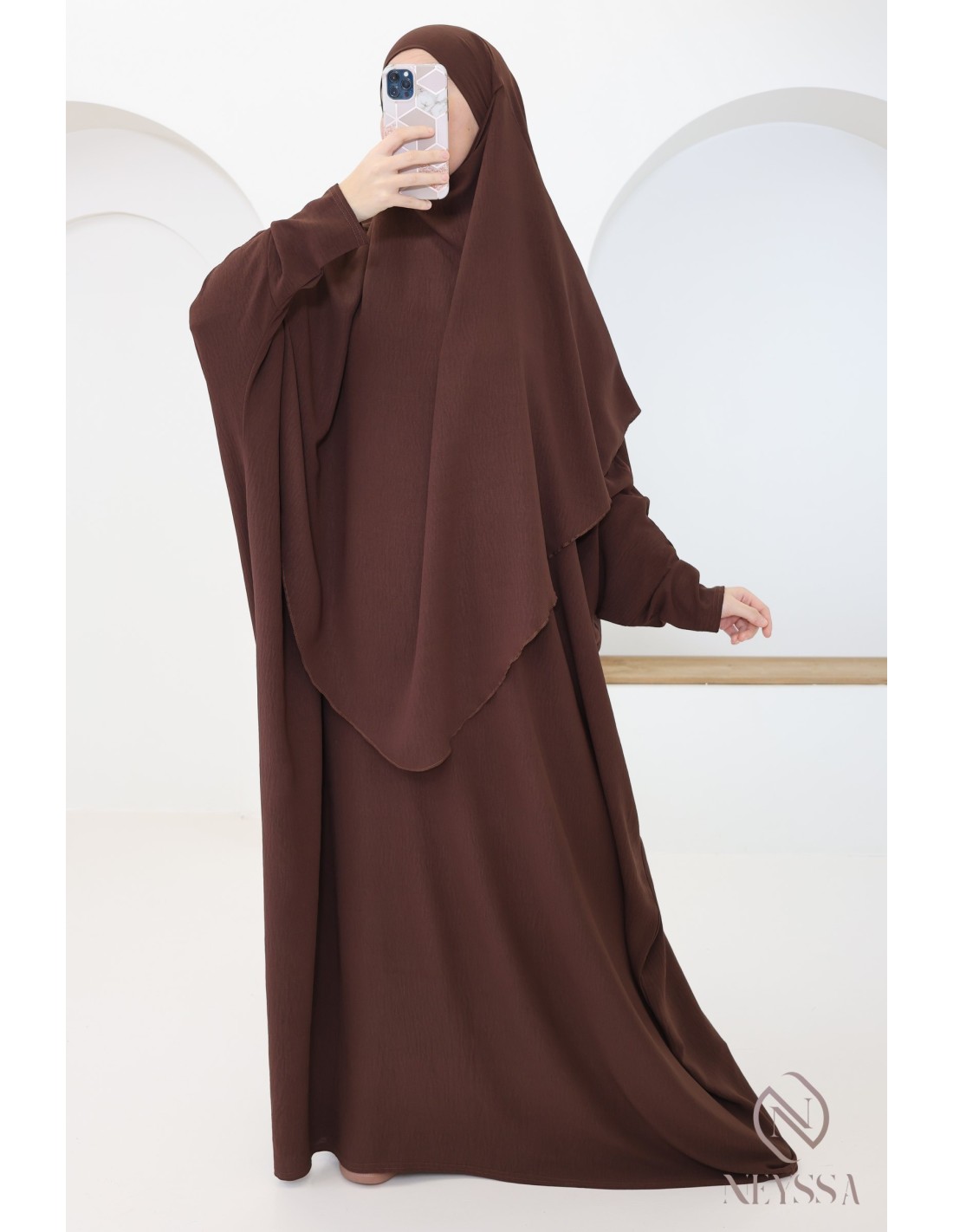 Ensemble abaya et khimar avec hijab intégré pas cher soie de jazz