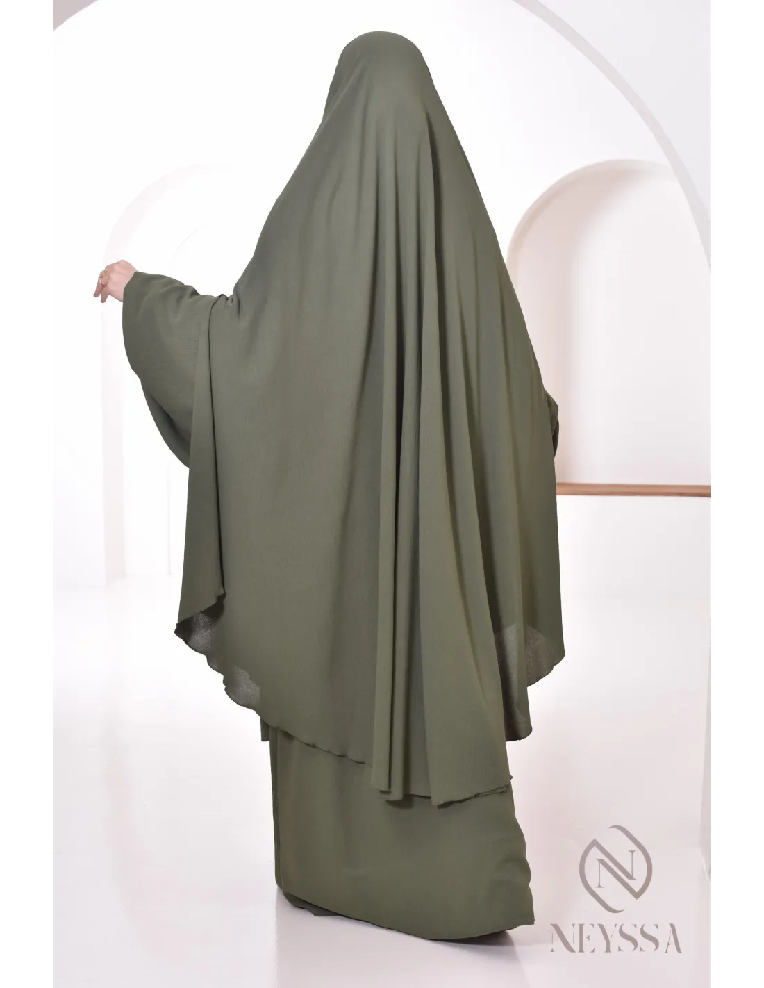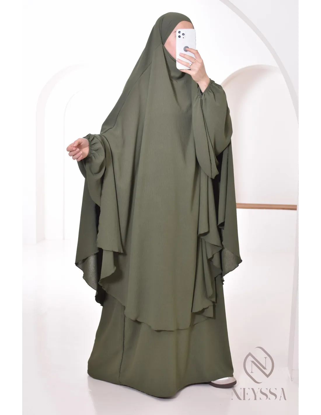 Notre combo abaya khimar a été pensé par Neyssa dans un tissu en Jazz fluide au joli retombé.