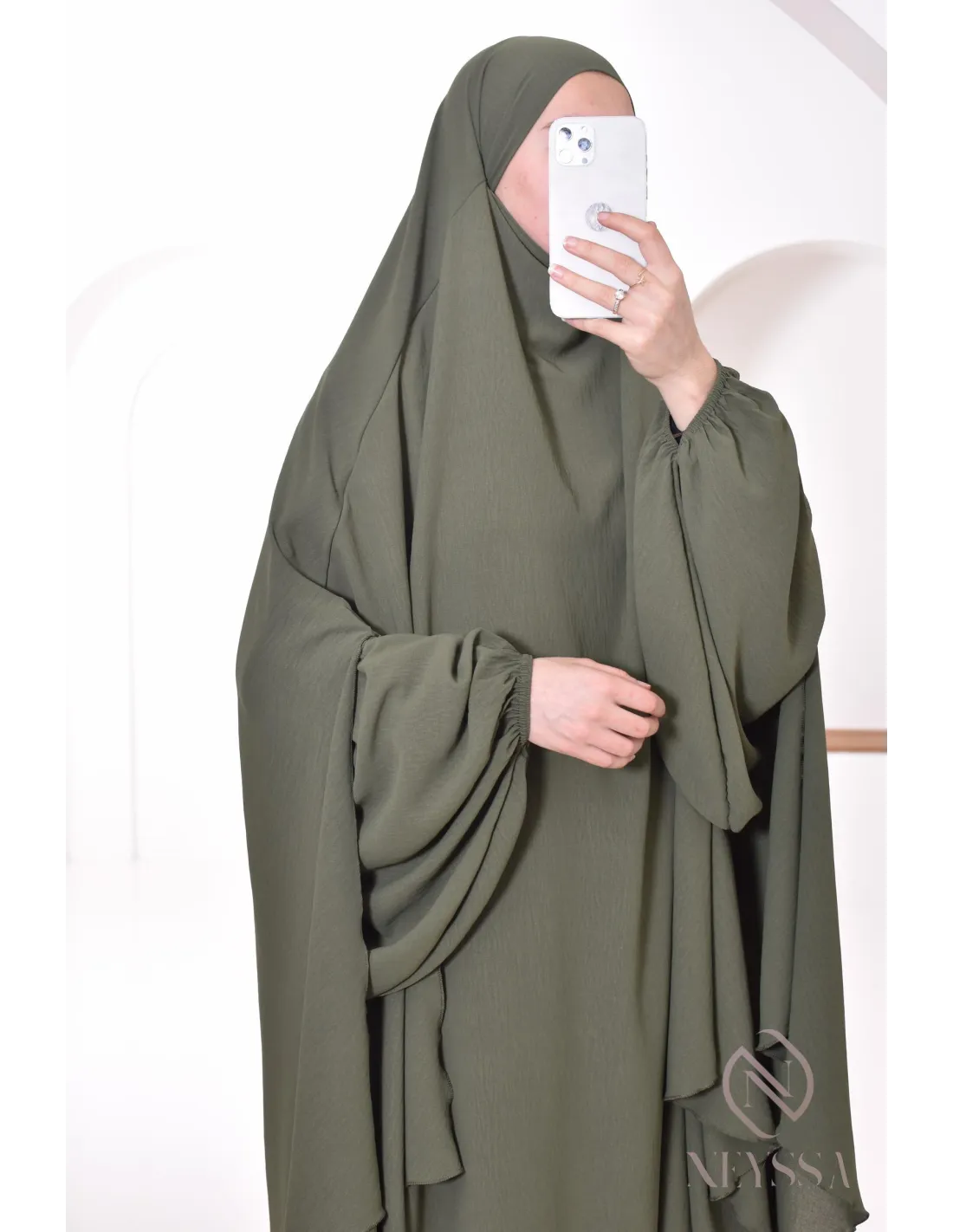 Abaya manches bouffantes avec khimar, tenue légiférée