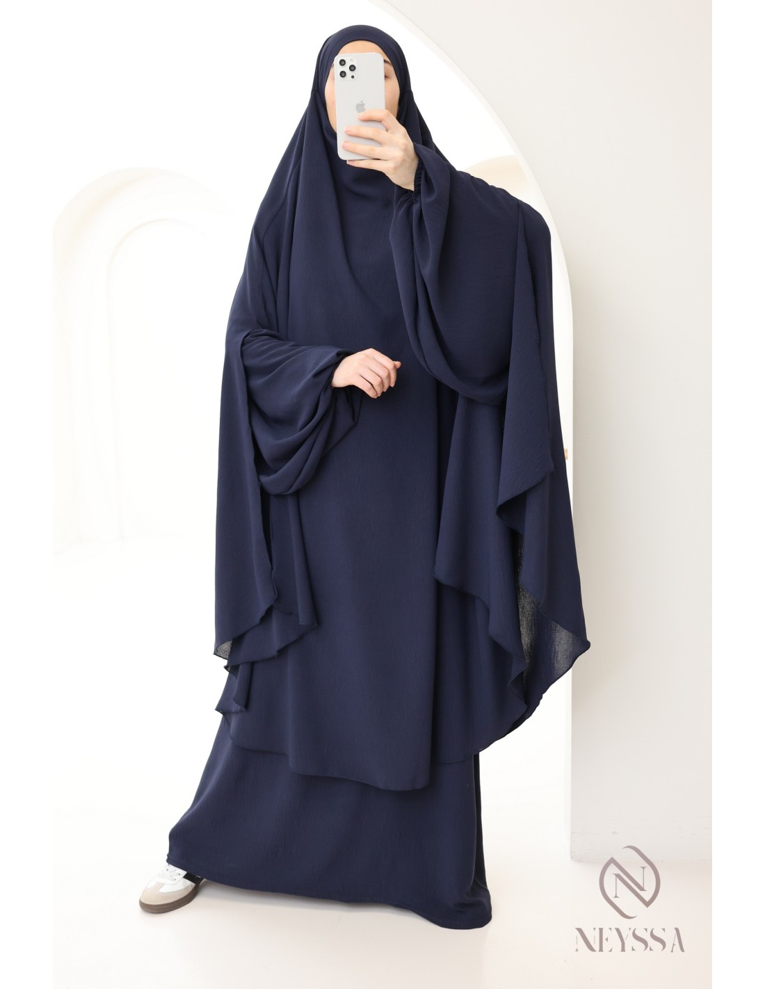 Notre combo abaya khimar a été pensé par Neyssa dans un tissu en Jazz fluide au joli retombé.