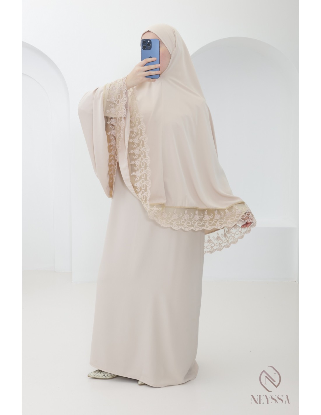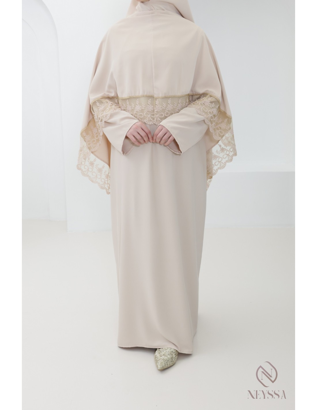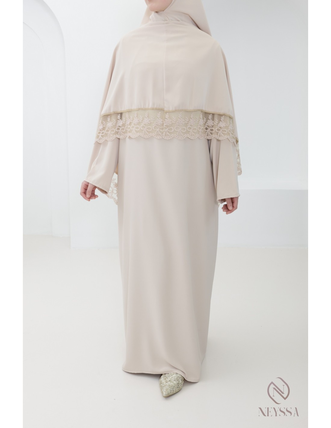 Robe de prière khimar intégré à dentelle