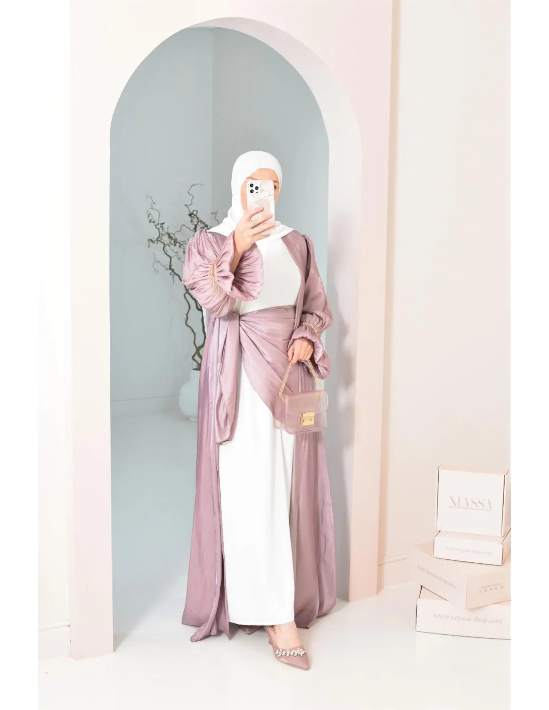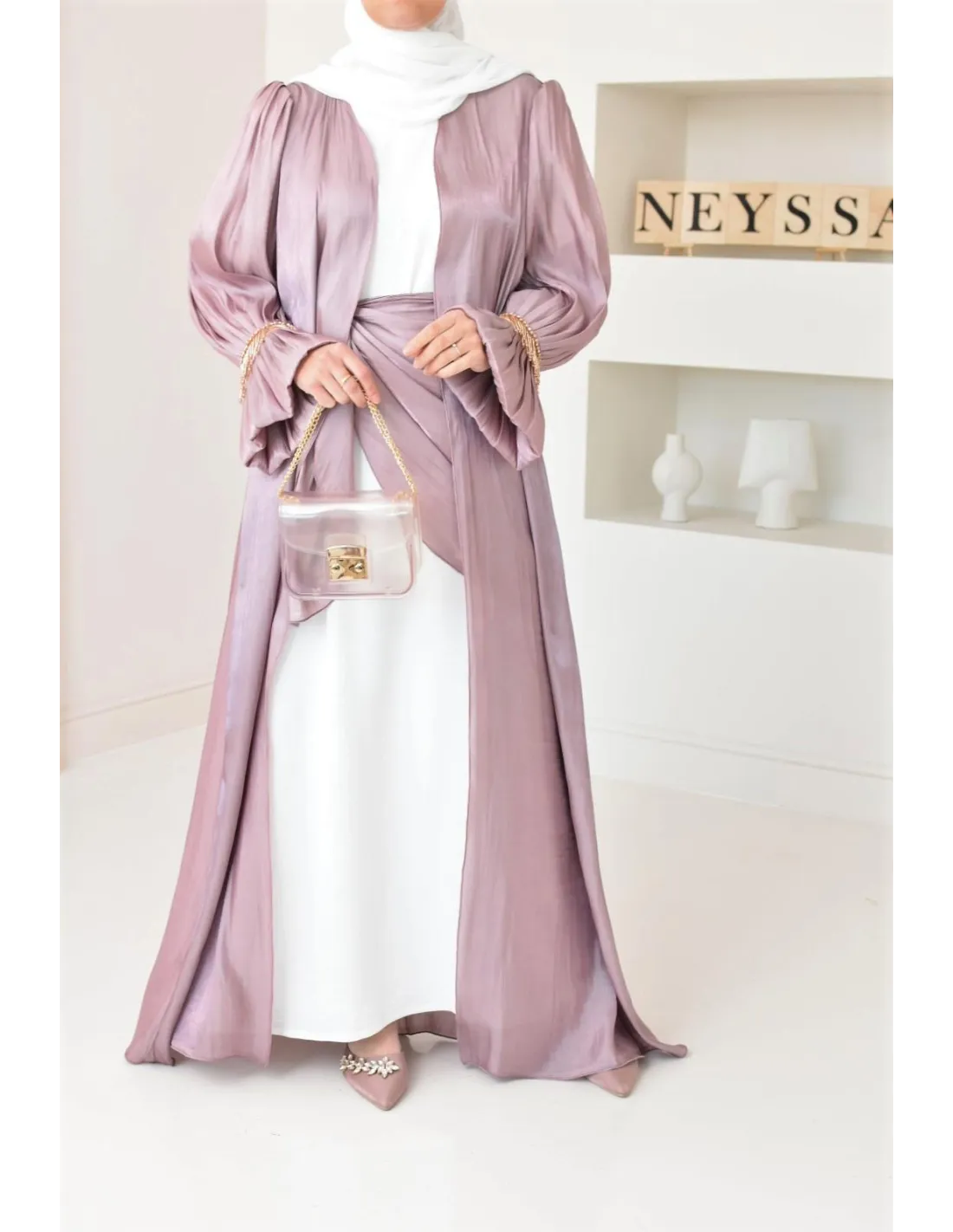 La Abaya de soirée longue satinée parfait pour vos événements ! Optez pour ce magnifique ensemble Neyssa confection: