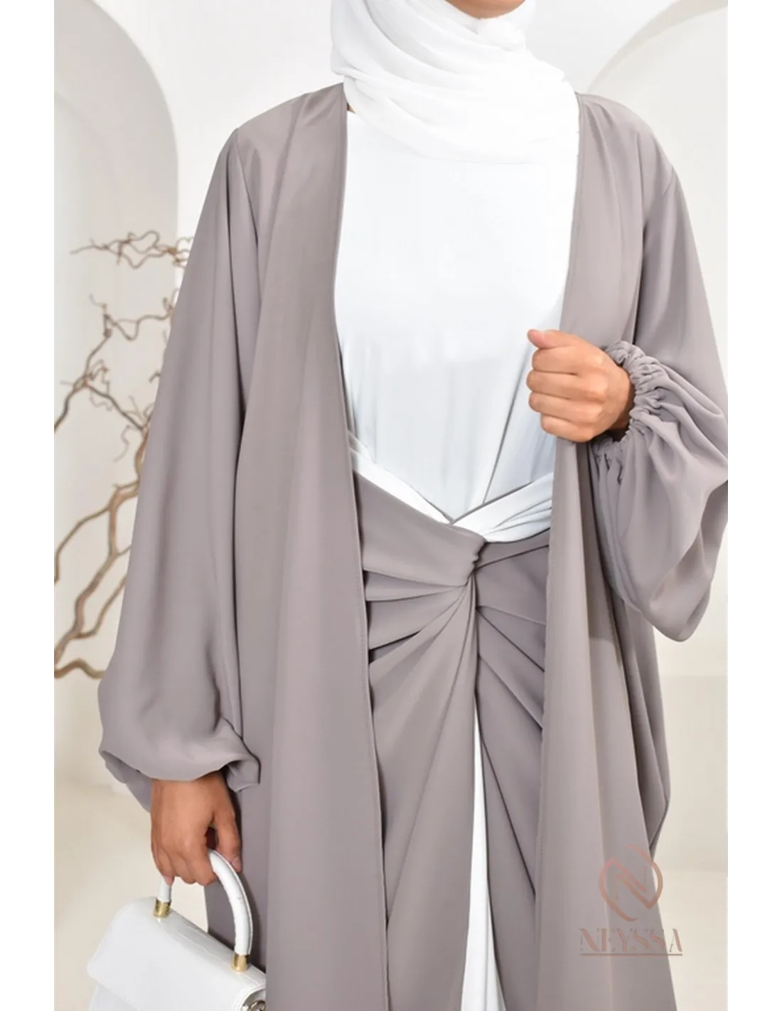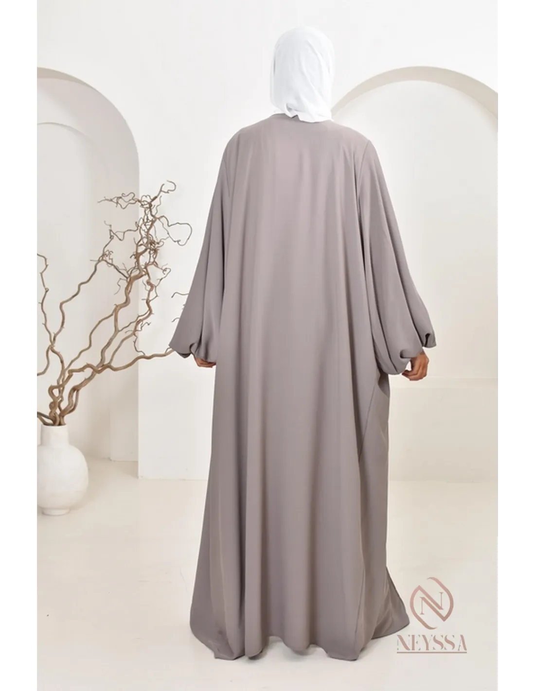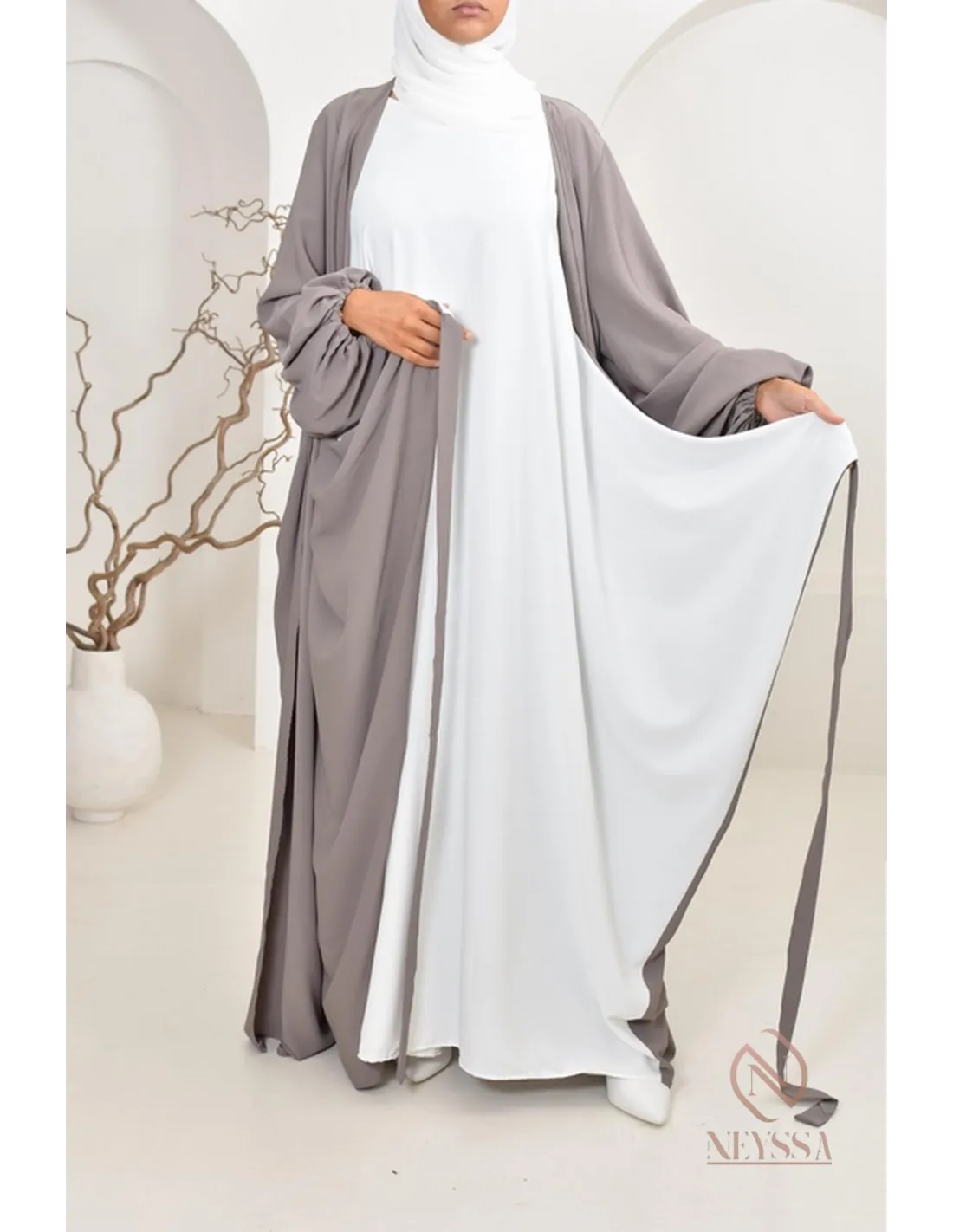• La sous abaya coté taupe avec le paréo blanc