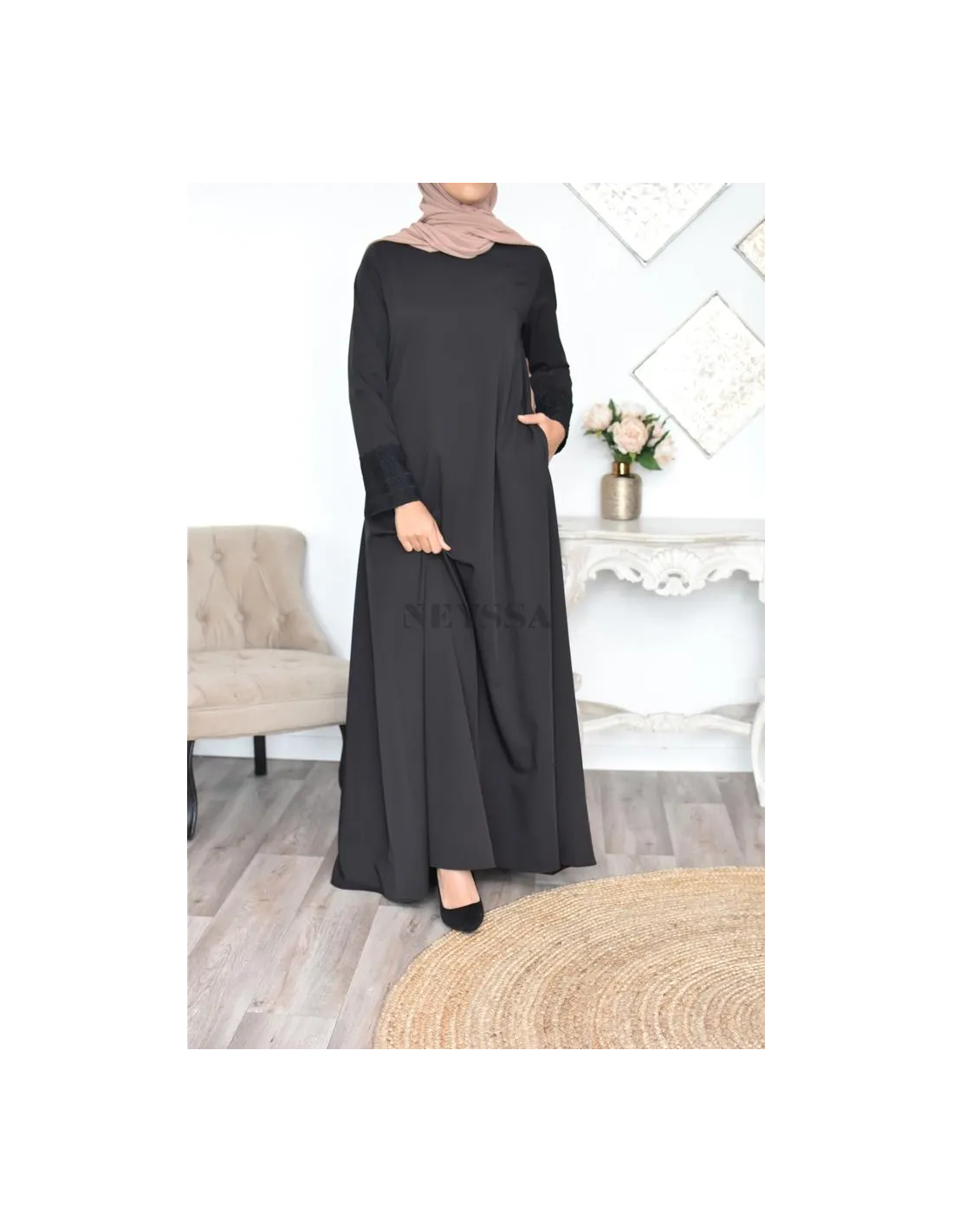 Abaya conçue dans une matière haute qualité opaque, ne froisse pas, le retombé est impeccable, vous craquerez pour le confort qu'elle procure au quotidien