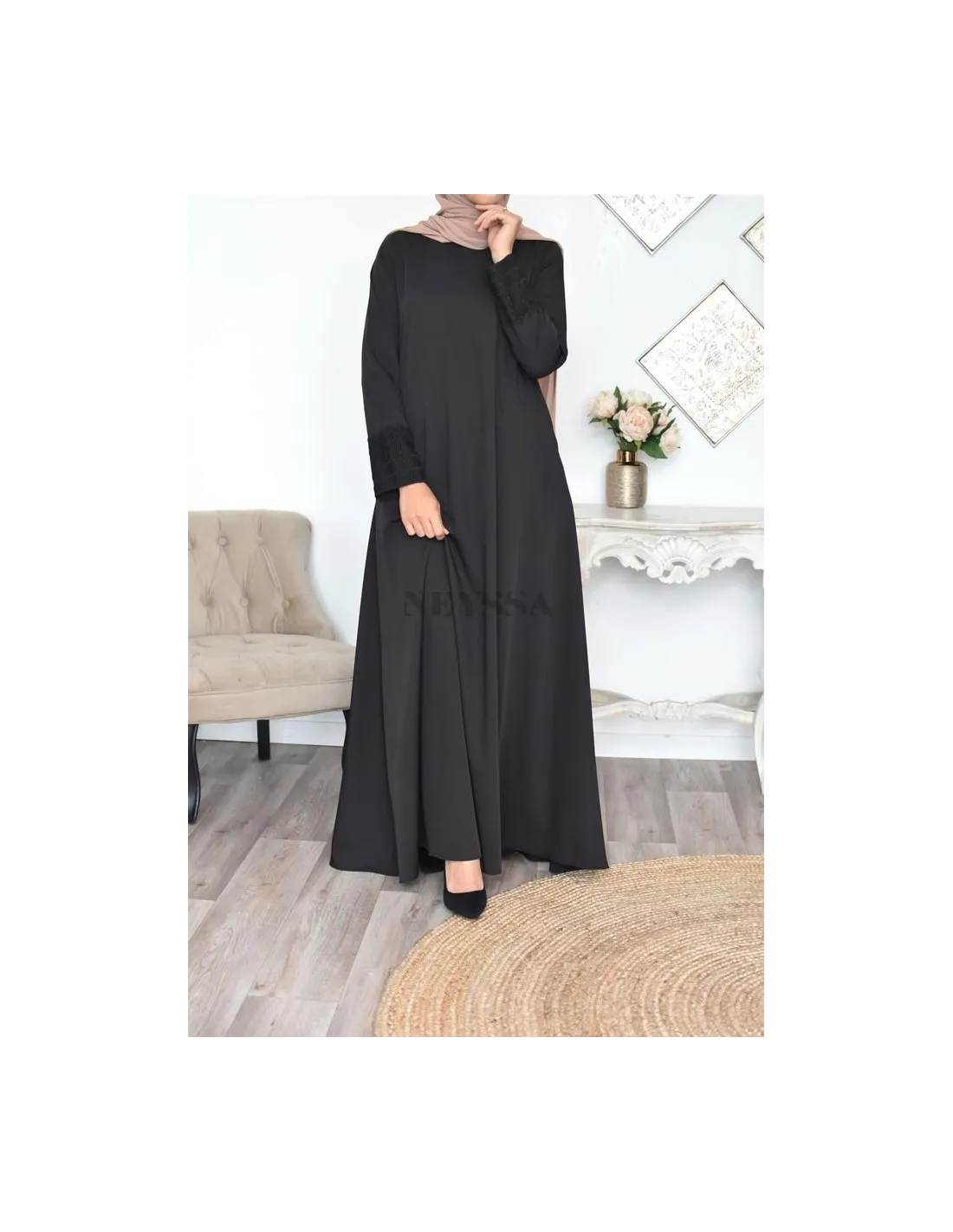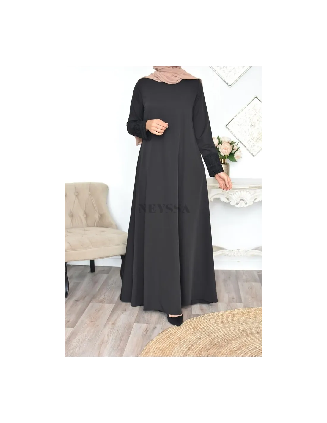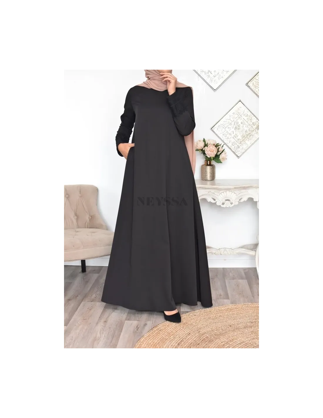 Vous tomberez folle amoureuse de cette robe abaya Mastoura évasée Essentielle pour le dressing de la femme musulmane.