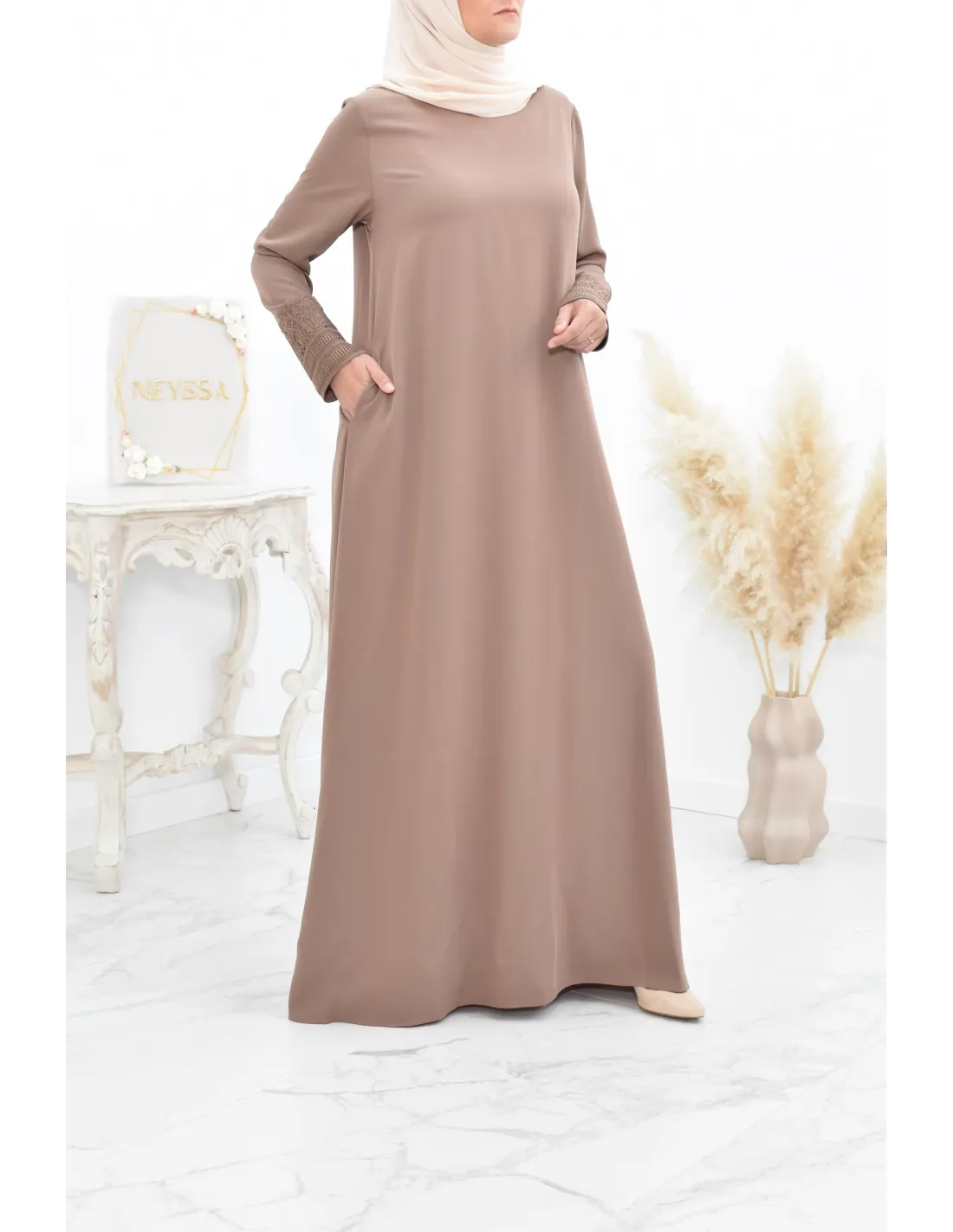 Vous tomberez folle amoureuse de cette robe abaya Mastoura évasée Essentielle pour le dressing de la femme musulmane.