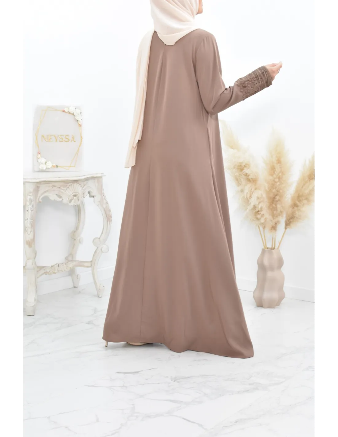 Abaya conçue dans une matière haute qualité opaque, ne froisse pas, le retombé est impeccable, vous craquerez pour le confort qu'elle procure au quotidien