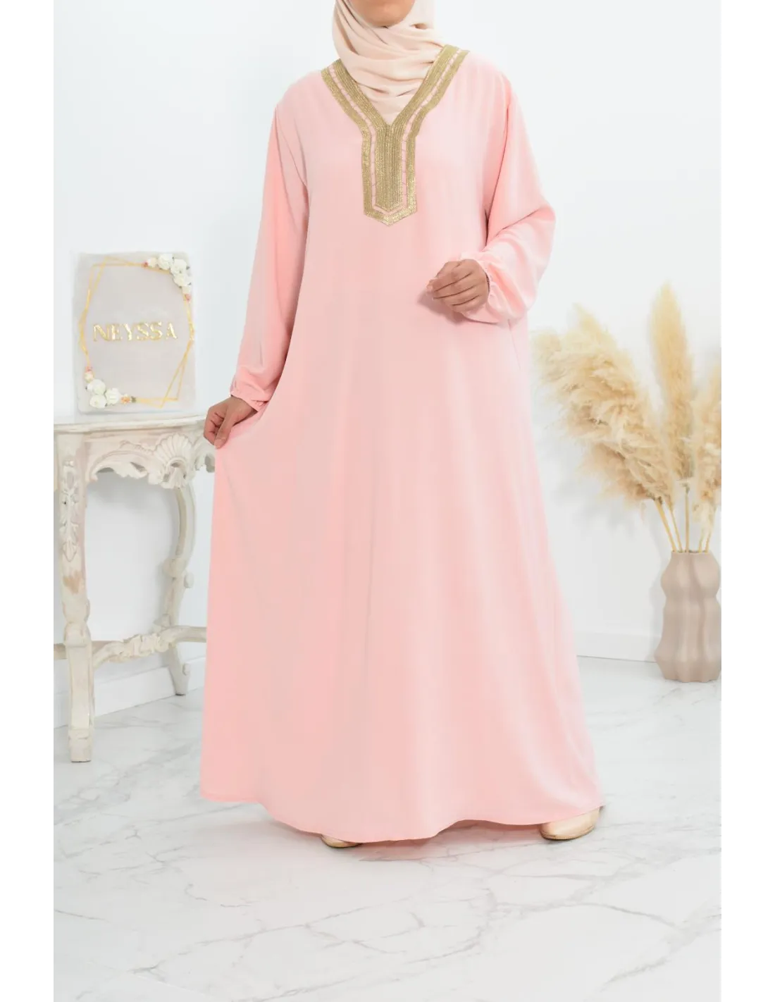 Robe abaya style oriental avec sfifa au quotdien et fête de l'Aïd