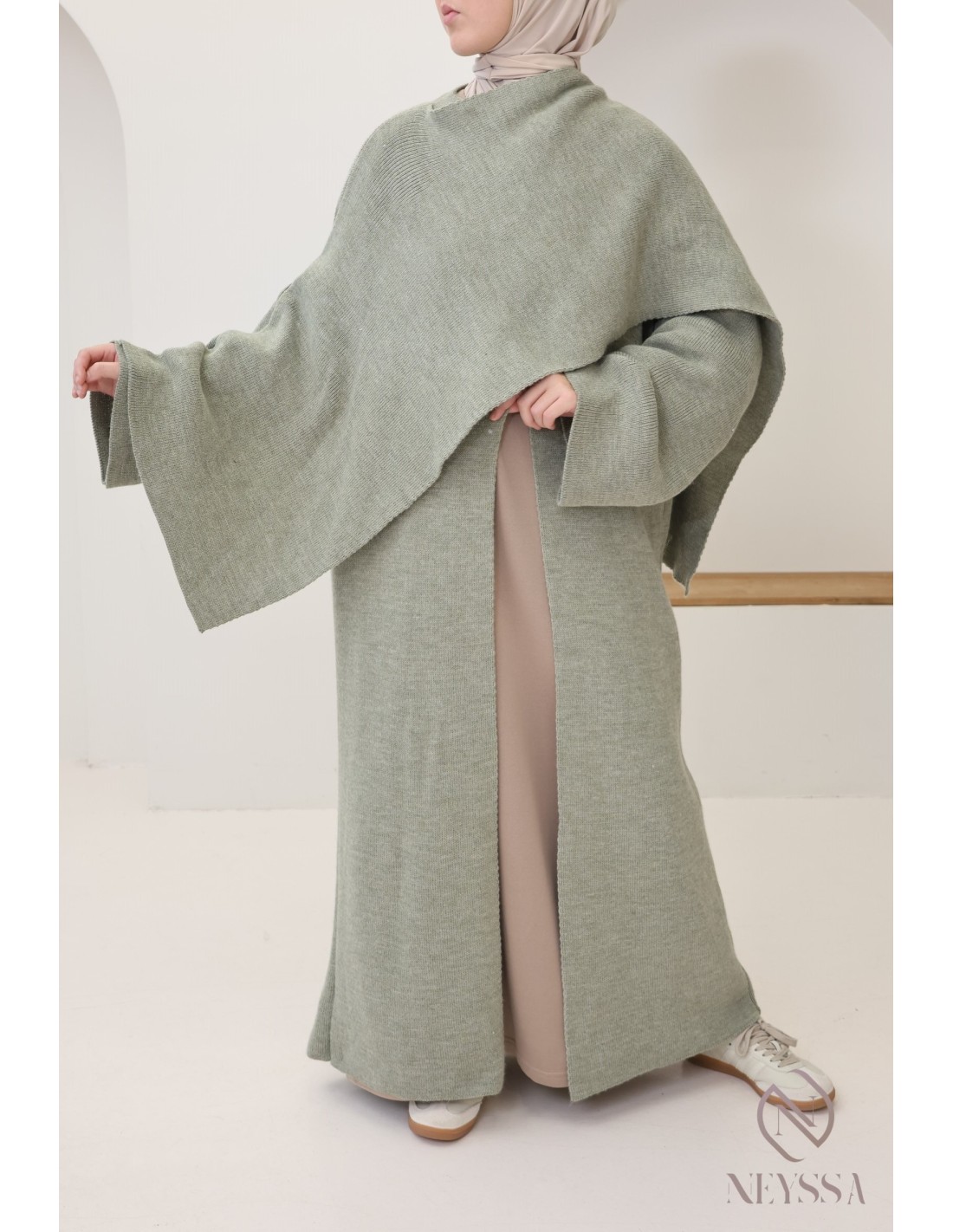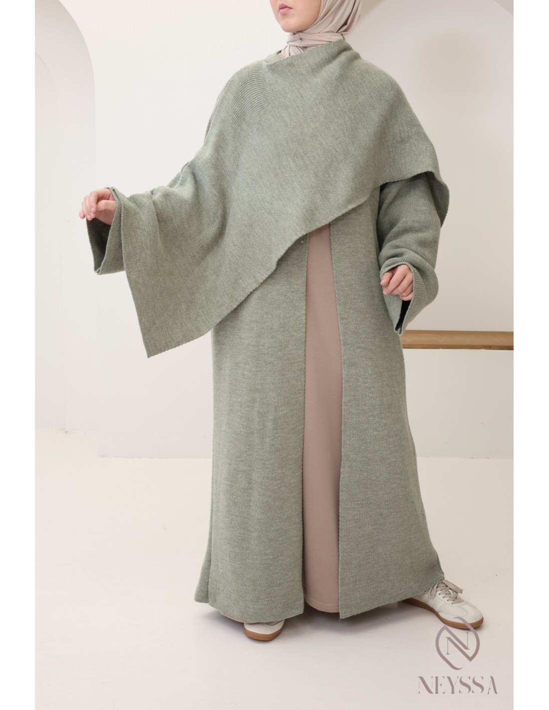 Gilet en maille avec cape intégrée, tenue modeste élégante