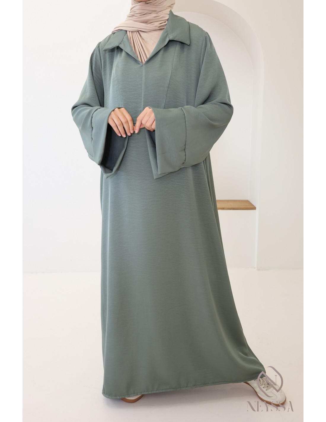 Abaya col chemise avec poches Adelina
