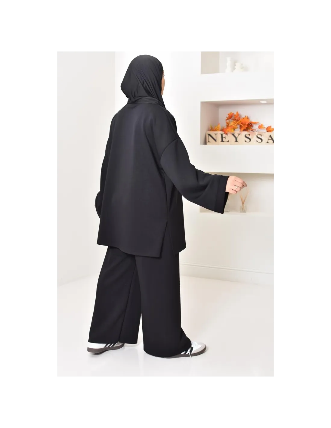 • Coupe : La longueur mi-longue et la coupe ample permettent de flatter toutes les morphologies. Cet ensemble crée une silhouette équilibrée, tout en respectant les exigences d'une tenue modeste.
