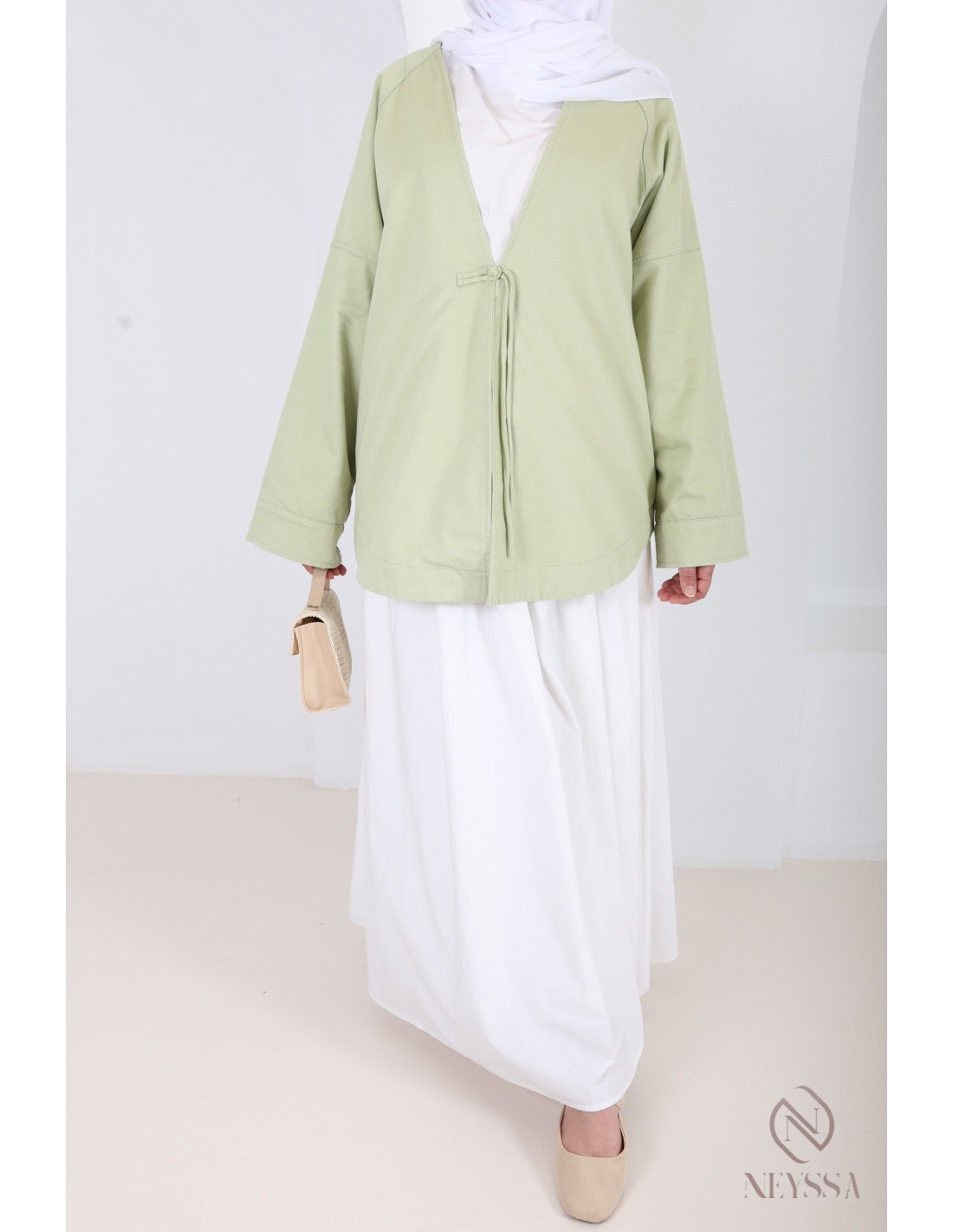 Chez Neyssa, nous vous proposons des prêt à porter modeste tendance dans lequel vous n'y trouverez que des pépites, dont cette magnifique veste.