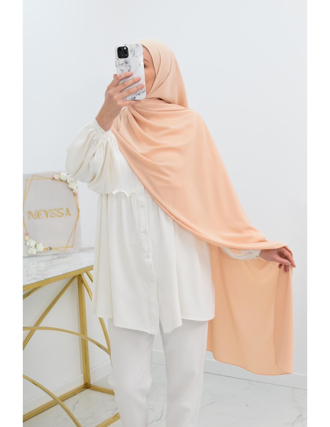 4 Hijab en soie de Médine : confectionnés à partir de soie de Médine opaque, ces hijabs allient douceur et légèreté. Dimensions : 190cm/70cm