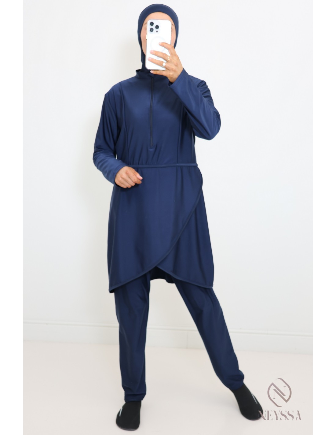 • Tunique à zip croisée : Ce burkini offre une couverture complète du corps conformément aux principes de modestie de l'islam, permettant aux femmes musulmanes de profiter des activités aquatiques tout en préservant leur dignité et leur foi . Le croisé de la tunique apporte une touche de style, tandis que le zip facilite l'enfilage ainsi que l'allaitement pour les femmes enceintes.