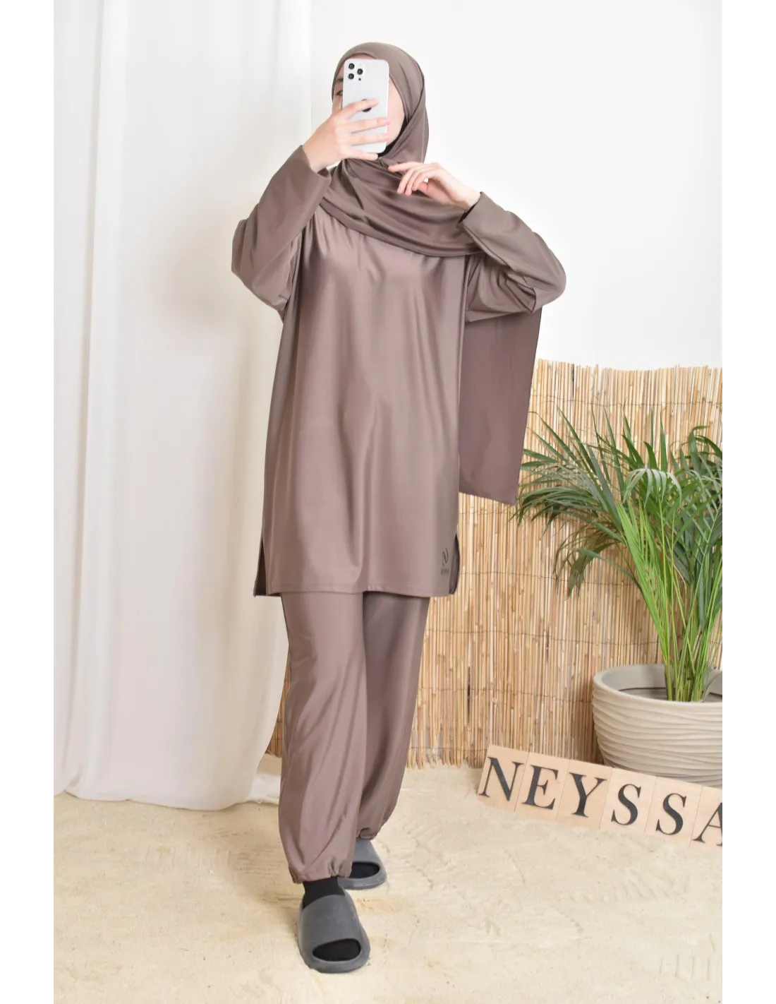 Burkini tunique longue taupe modest swimwear