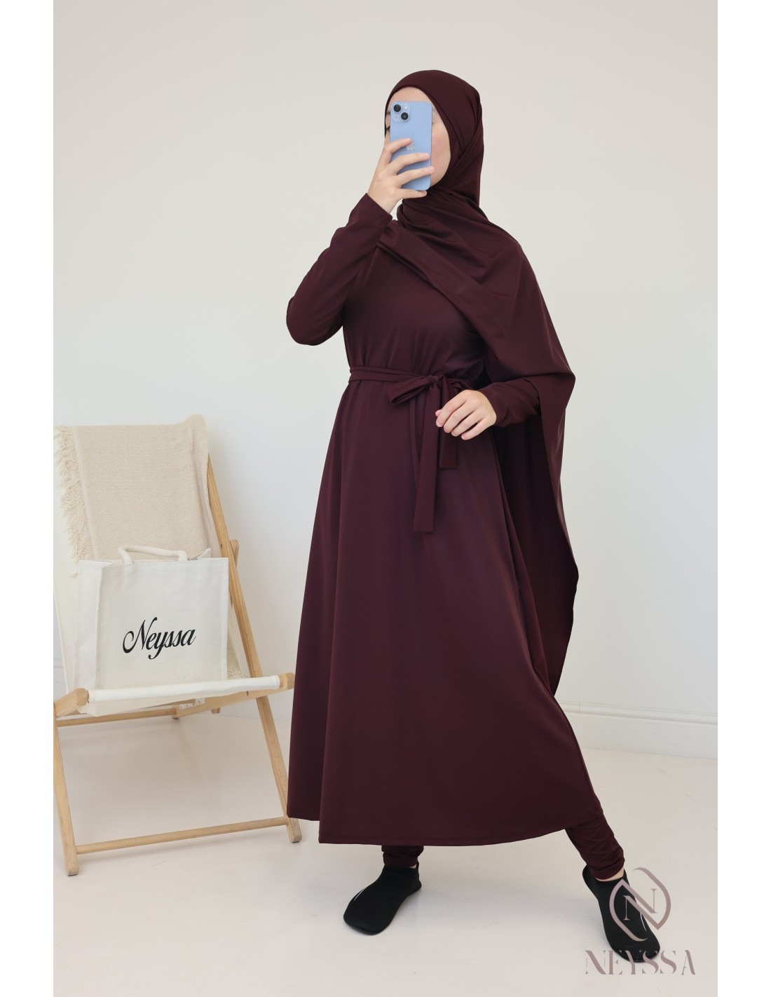 Si vous recherchez un ensemble de bain mastour bien long, confortable, qui sèche rapidement, Neyssa a créé spécialement pour vous ce burkini qui répond à tous ces critères!