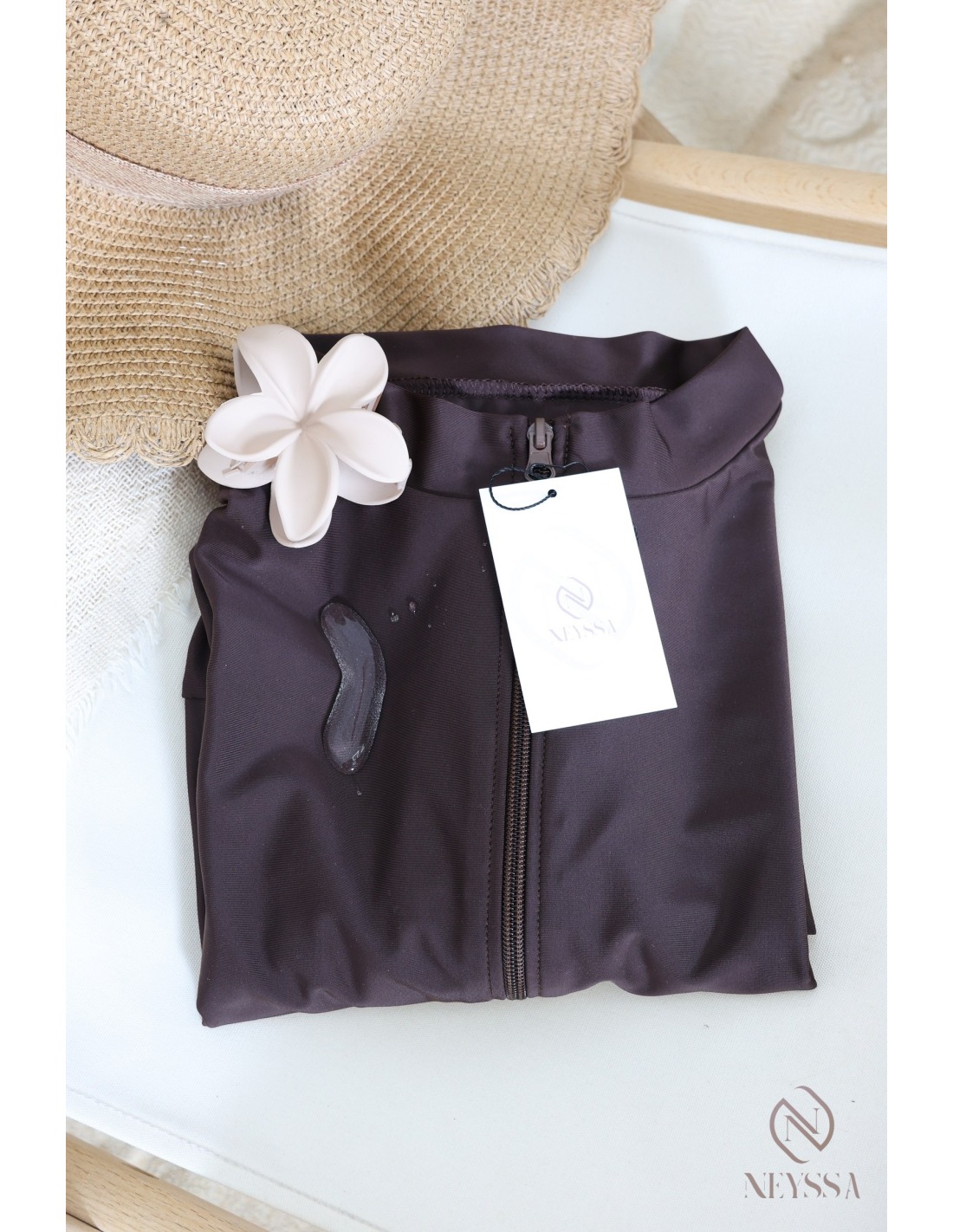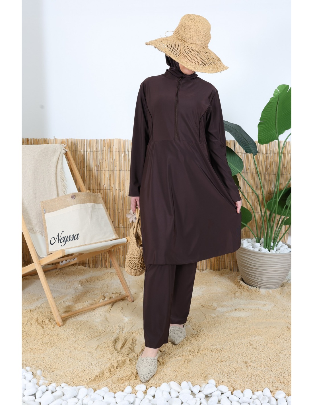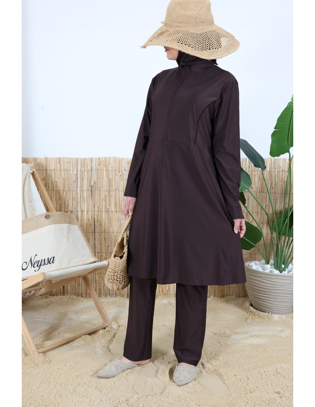 Burkini 3 pièces tunique zippée Chocolat