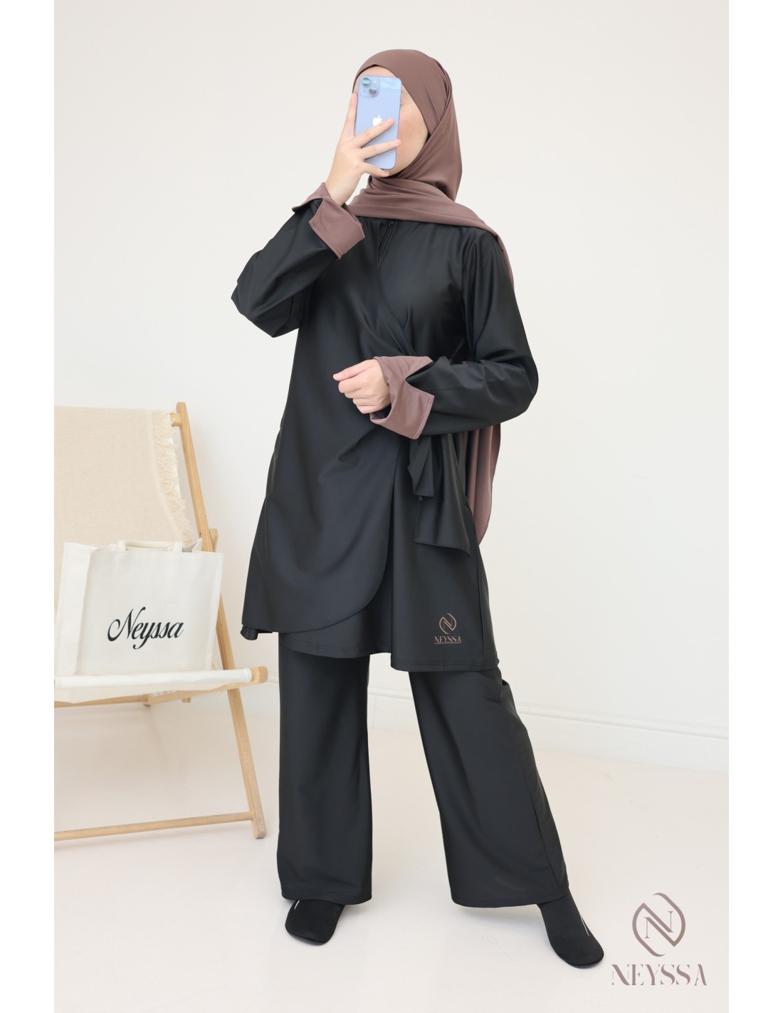 Neyssa a confectionné pour vous ce maillot de bain musulman qui ne colle pas et qui très sèche vite! Il est moderne, confortable et se porte facilement pour une baignade ou même une activité sportive aquatique sans avoir à se priver en tant que femme musulmane.