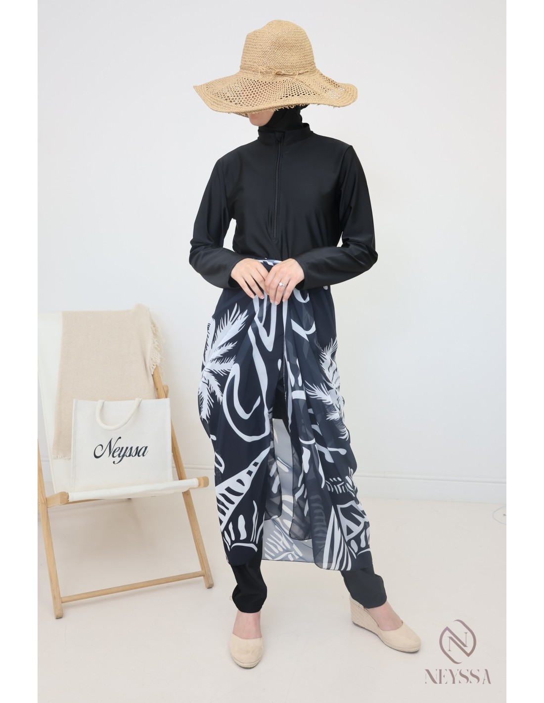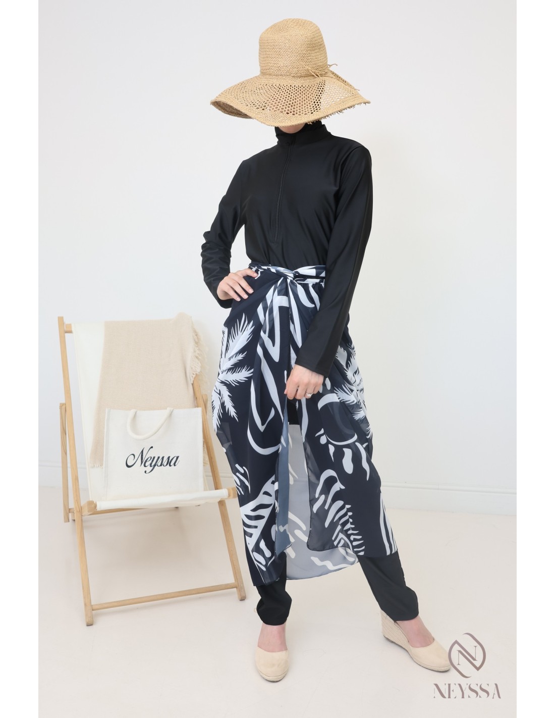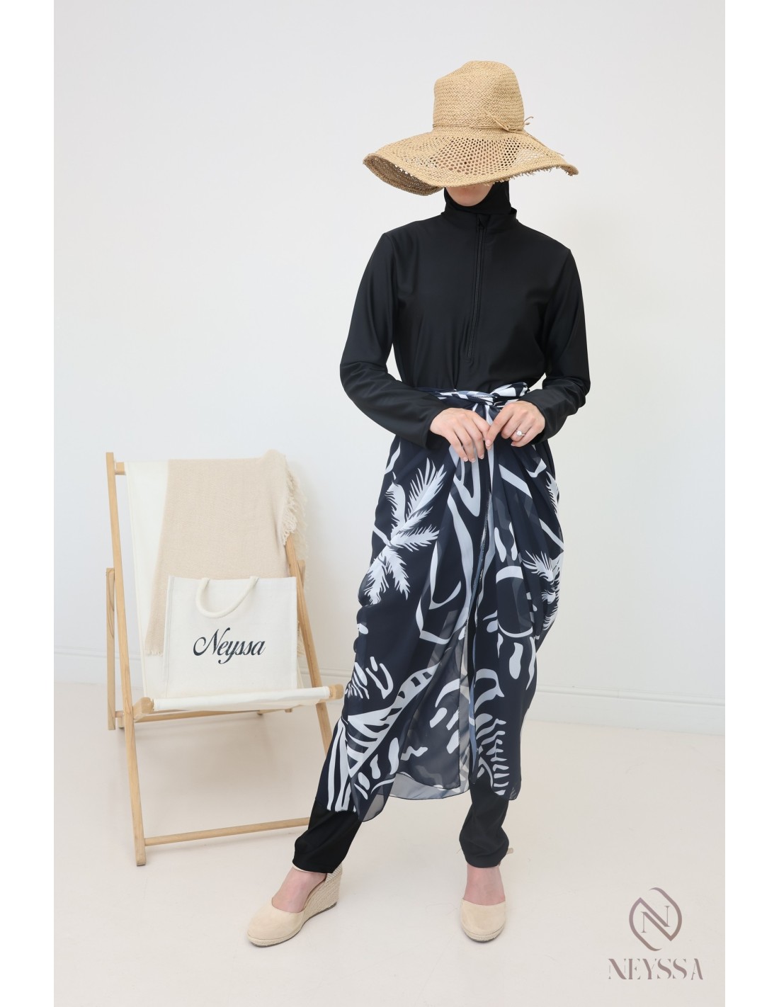 Burkini long croisée noir avec paréo pour femme hijabi tendance
