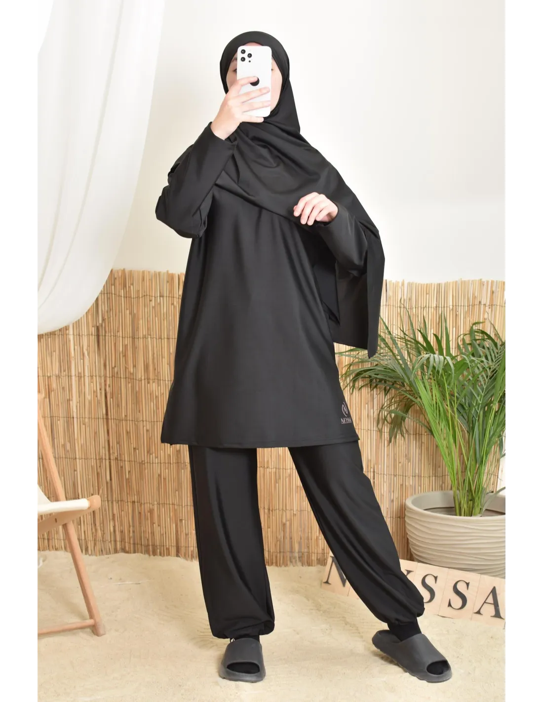 Burkini long noir femme idéal pour la nage